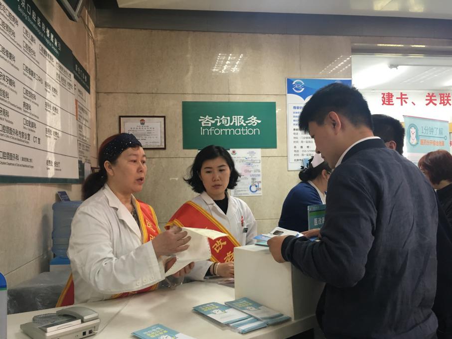 3月30日起,我院在两个院区门诊大厅专设医改政策咨询服务台,在门急诊各个楼层安排医改咨询志愿者,宣传医改政策和医院的便民举措,积极引导并帮助患者顺利就医。