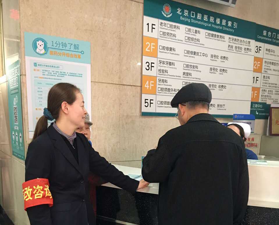 按照党委要求,机关、教育处、后勤、修复工艺、王府井综合党支部(总支)的党员和积极分子130余人充分发挥先锋模范作用,组建服务团队,走上一线岗位,承担政策咨询和患者心理疏导工作。团队中包含医务处、医保办公室、物价办公室等熟悉医改政策部门的工作人员,高效提升了为患者答疑解惑的专业化程度。