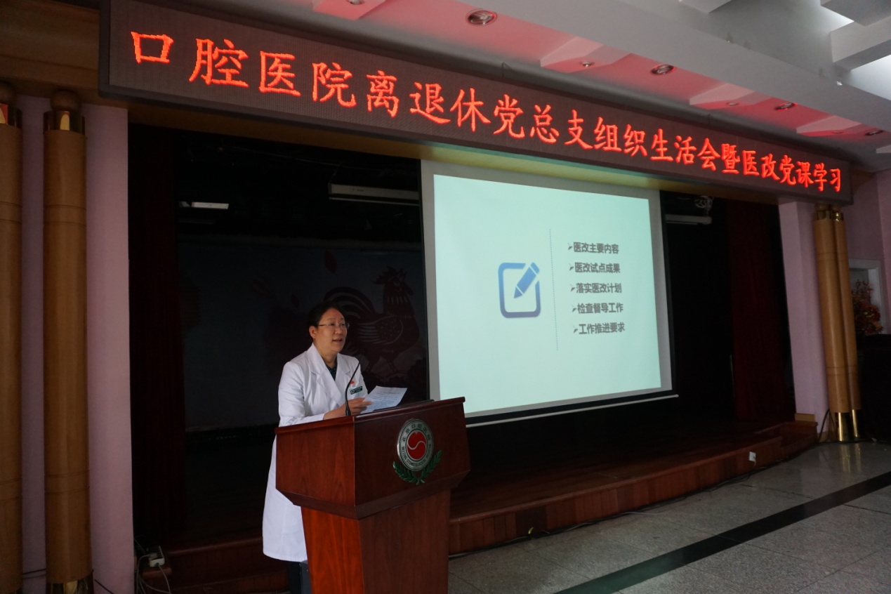 2017年4月6日上午,离退休党总支在多功能厅举办了离退休党总支组织生活会暨医改党课学习(医改政策解读)。参加此次生活会的离退休党员同志共计40余人。会上院党委委员、主管离退休工作的副院长刘淑敏同志,就此次医药分开综合改革基本内容对离退休党员同志做了详细解读。使老同志进一步理解了这次医改的精神,统一了认识,受到了鼓舞。