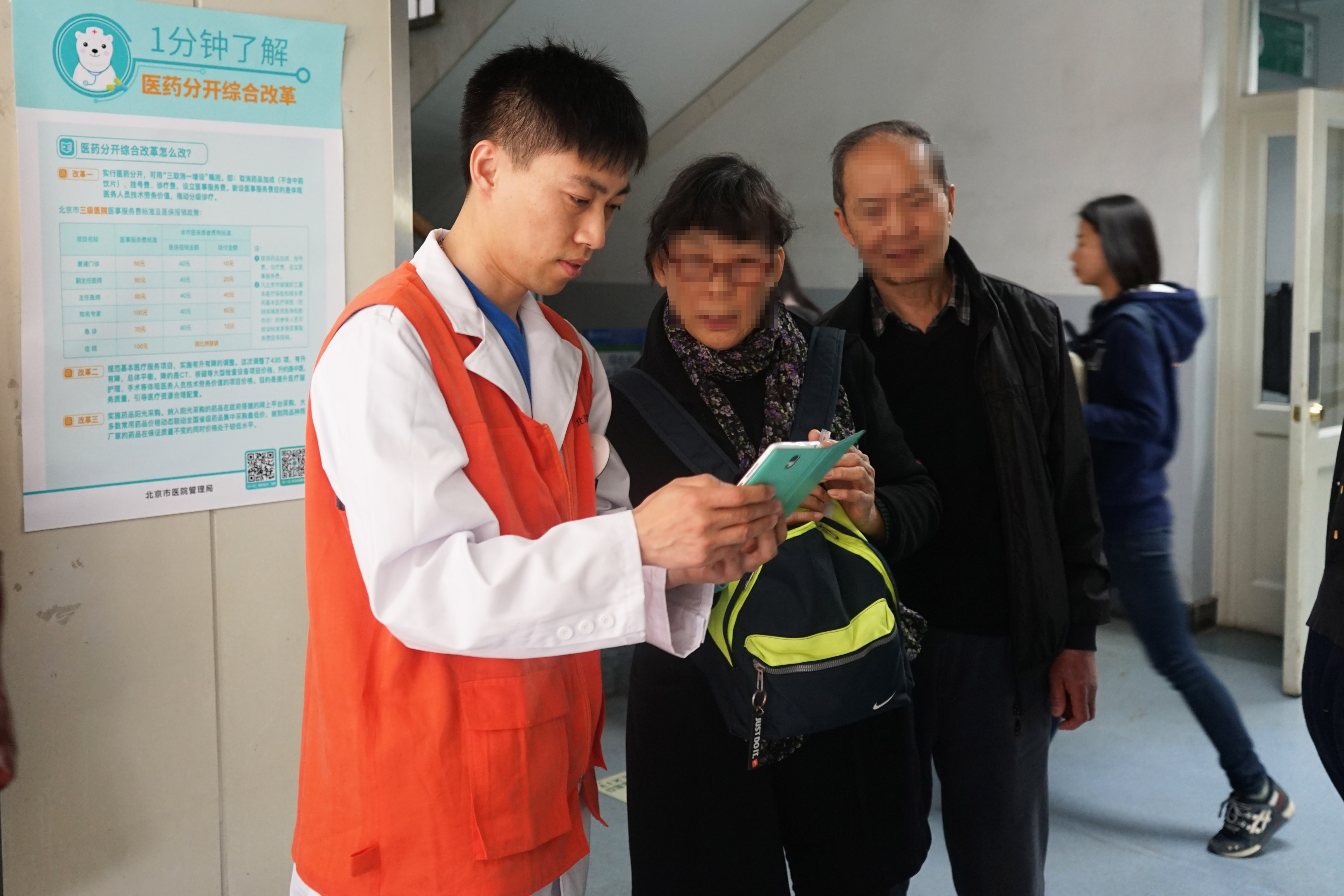 看完病,二老专门来到门诊办公室,表达感谢,说是遇到了好大夫,祁主任病情解释清晰,诊断明确,态度还特别好,特别令二位老人感动的,是医改志愿者的细心和体贴,如果不是医改志愿者,老人可能因错过取号时间而不能就诊,可能取了自费号而全然不知,也可能因为是自费号而选择放弃就诊白跑一趟。