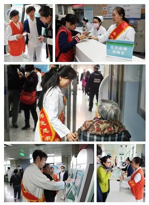 其实,在门诊各个楼层,都能看到像刘韬一样身穿黄马甲或是挂着绶带、袖标的医改志愿者,他们无时无刻不在您的身边,热心地答疑解惑,耐心地导诊指路……