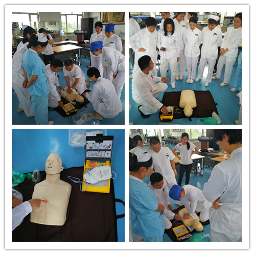 大家认真聆听学习,随后全科医护人员每人都进行了在训练器上的实际操作,在假人新增的指示灯功能作用下,可以让大家对胸外按压的有效性具有更加直观的了解,也更直接地让大家体会到有效按压应有的频率和幅度。