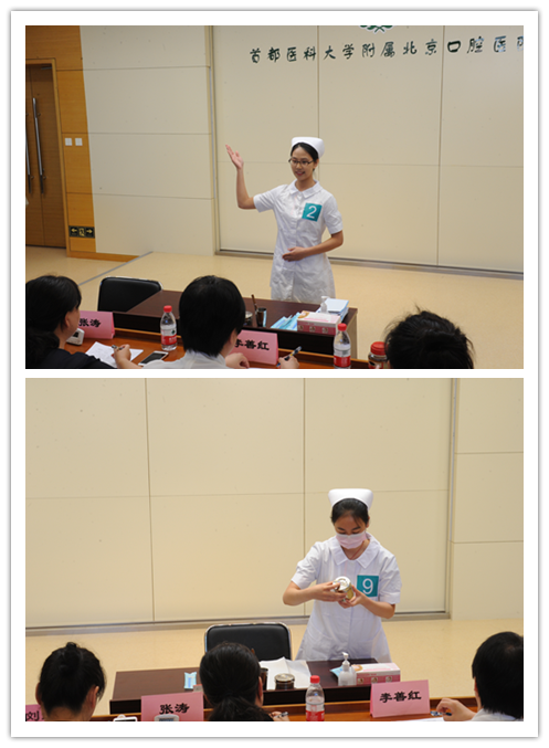 10名决赛选手从全市40多家医疗机构的100名初赛选手中优选而出,分别来自包括我院在内的4家口腔医疗机构。专家评委由北京口腔医学会护理专委会6名正副主任委员组成,专业评委由口腔内科专业4名护士长组成,两位特邀评委分别为我院牙体牙髓科副主任张琛、而至齿科有限公司中国区董事长鸟居胜实先生。