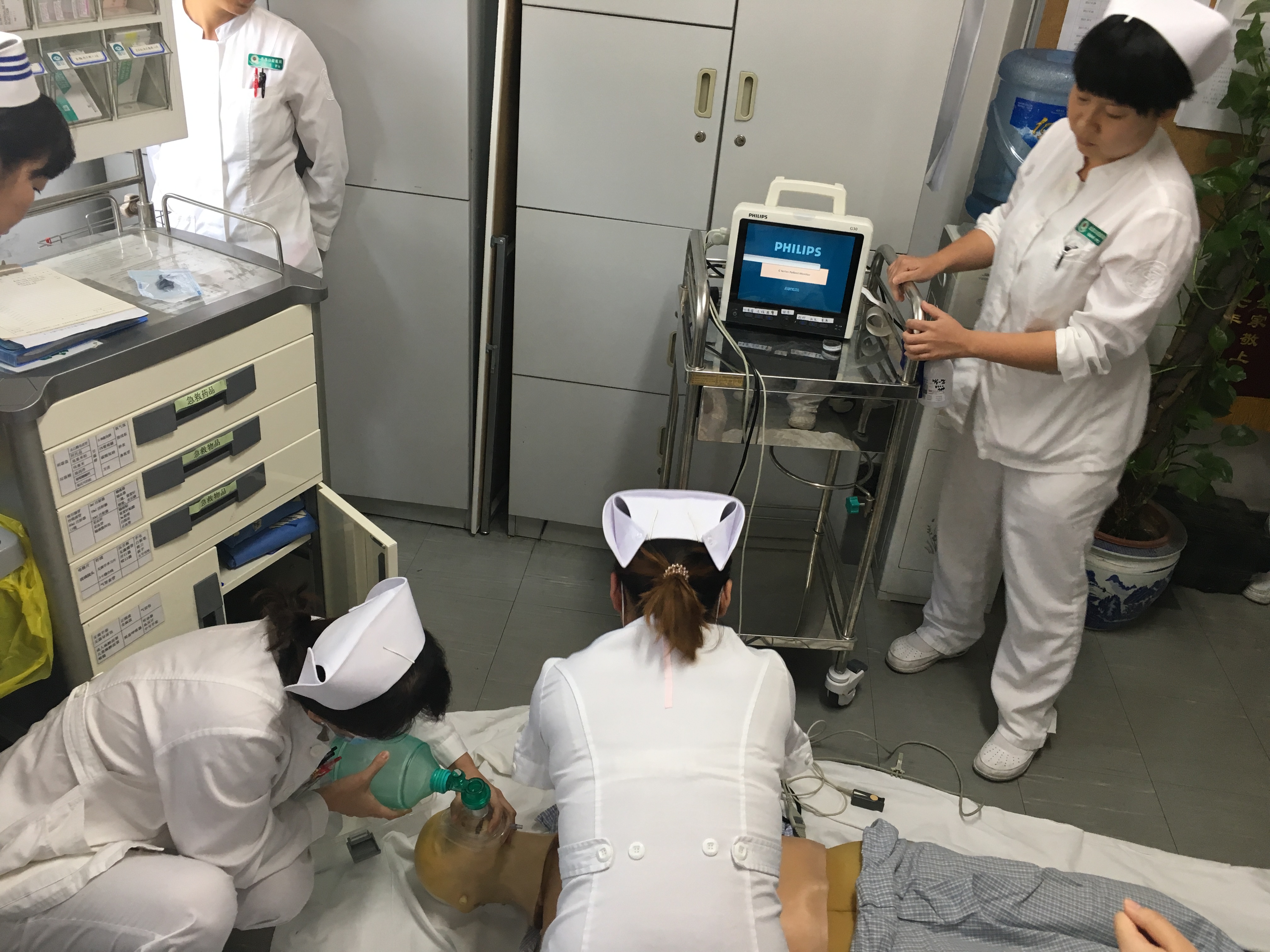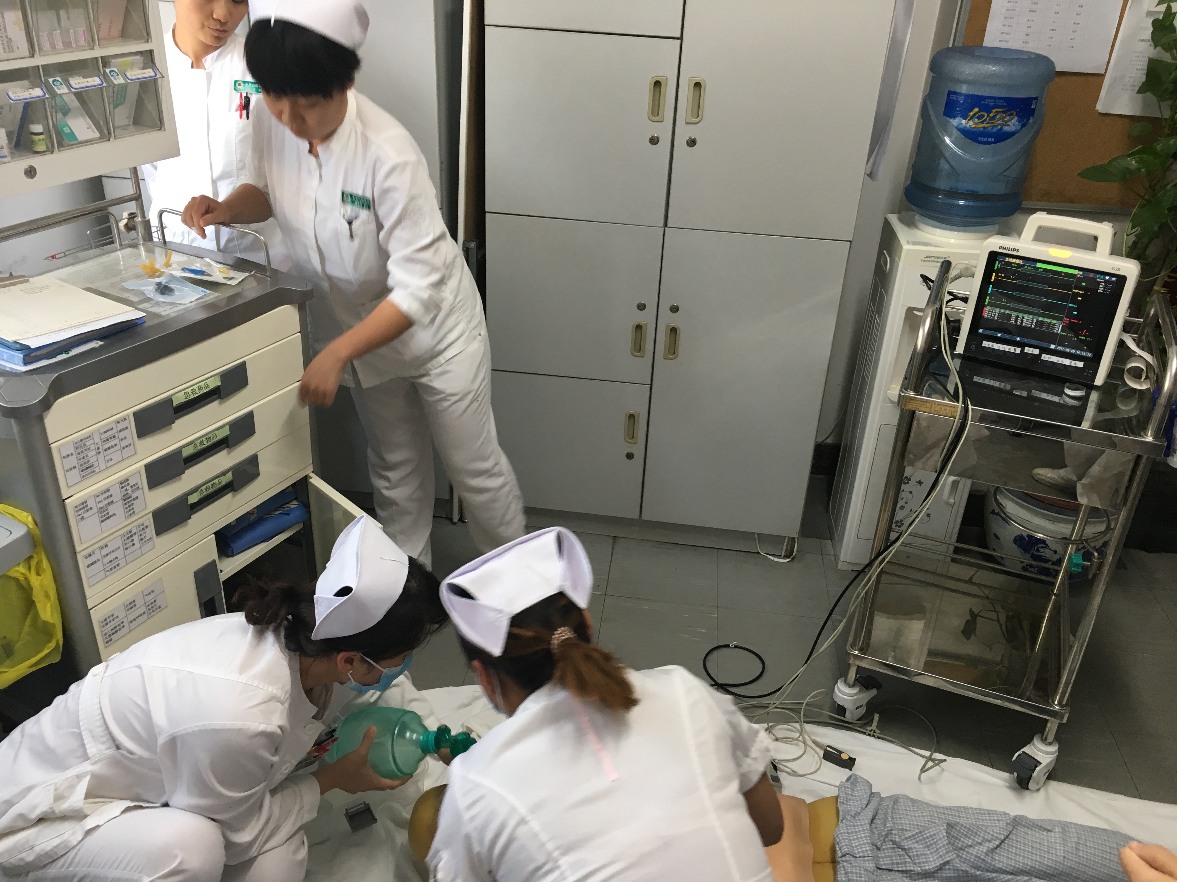 为加强科室护理人员急救技能及应急反应能力,确保节日及十九大期间护理安全,9月29日下午,在护理部主任王鸣带领下,头颈肿瘤科开展了患者突发意外急救模拟演练。
