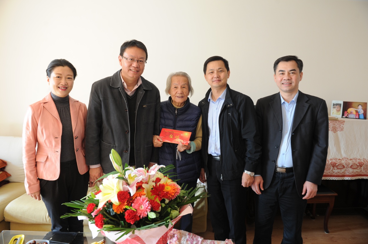 米堃同志1926年出生,现已91岁高龄,1945年曾在延安工作,曾任我院修复科党支部书记。徐长顺副巡视员与米堃同志亲切握手交谈,不断嘱咐老人一定保重身体,同时送上节日慰问金。我院党委书记郑东翔为老人送上鲜花和慰问品,表达了医院对老干部的关心和问候。