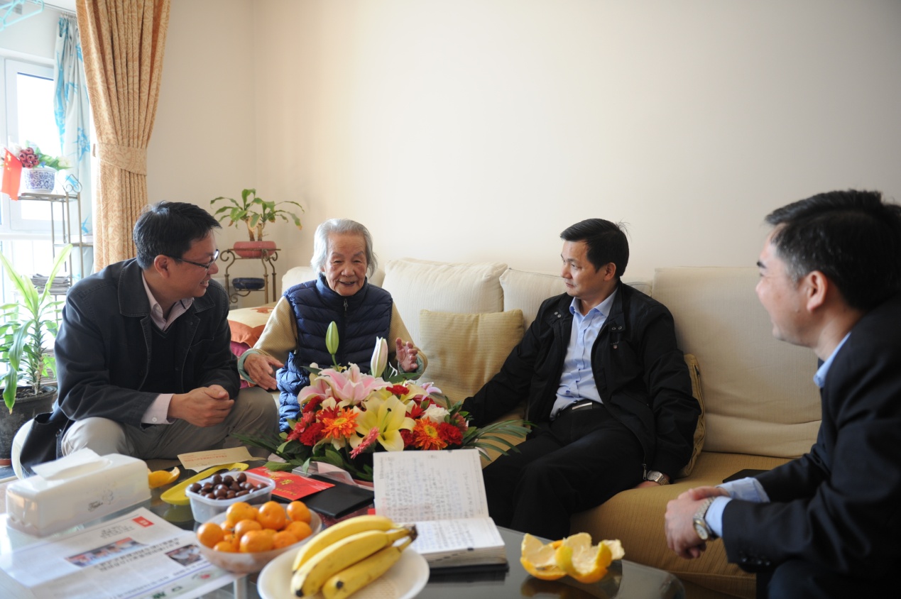在喜迎党的十九大胜利召开和重阳节来临之际,市医管局副巡视员徐长顺一行于10月23日慰问了我院离休干部米堃同志,医管局组织与人力资源管理处副处长农定国、我院党委书记郑东翔陪同。