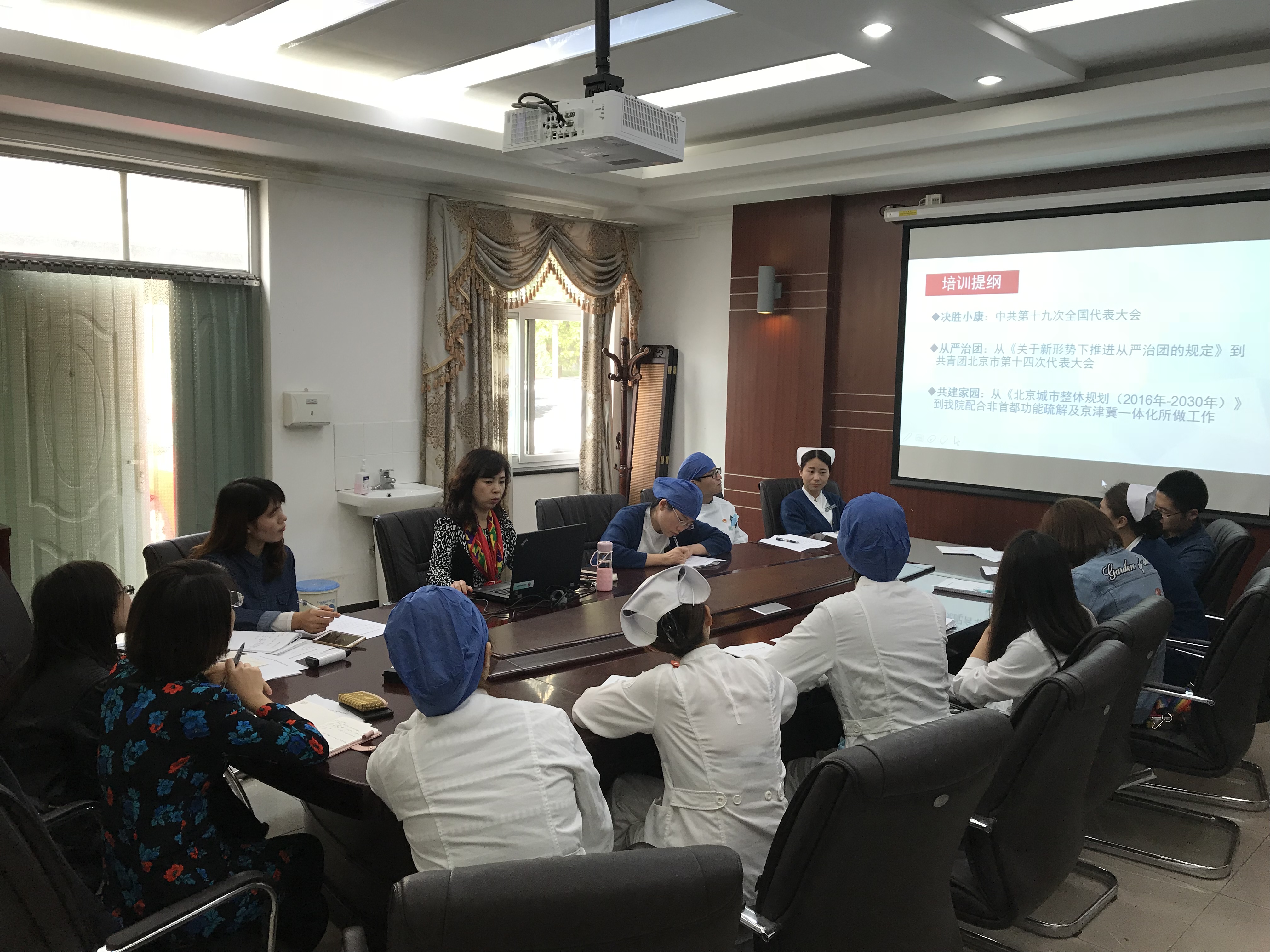 会议首先由吴缦莉副书记对与会人员进行了培训,吴书记围绕“决胜小康”、“从严治团”、“共建家园”三个主题,分别进行了十九大报告精神解读、新形势下共青团工作开展思路拓展、非首都功能疏解及京津冀一体化背景下我院前景展望,鼓励与会团员青年勇担时代重任,立足医院实际,创新工作方法,做出不负时代的青春业绩。