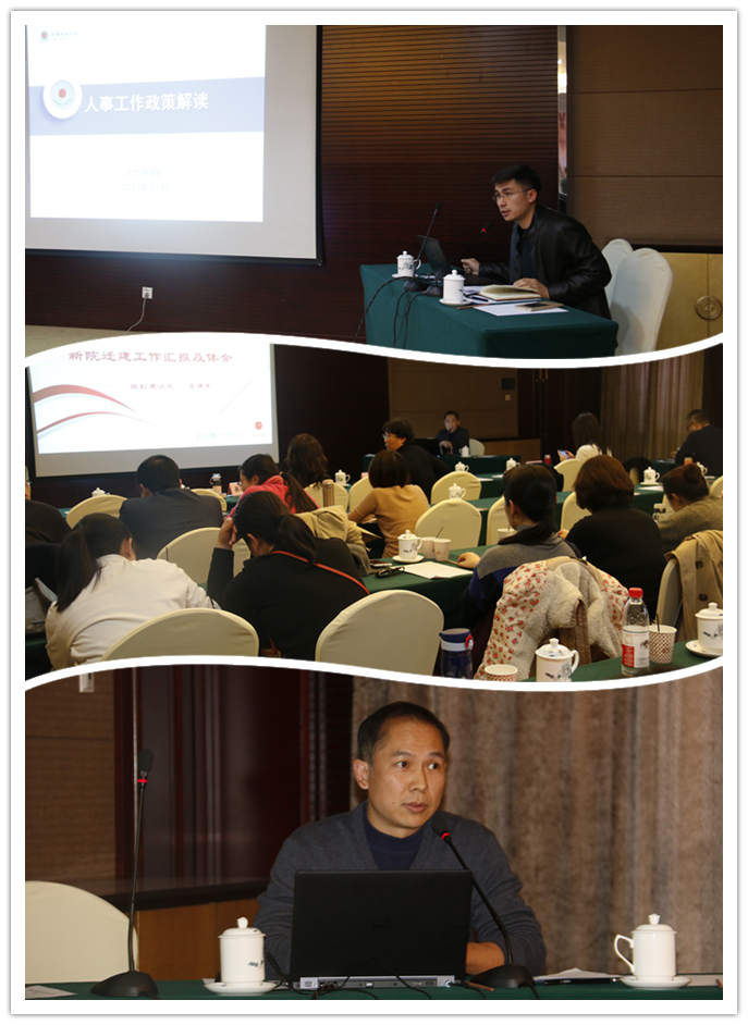 人力资源处、绩效办处长周斌做关于《综合医改专项考核及绩效分配、养老保险政策》的解读报告,为参会代表梳理解读了关于职工工资薪酬、保险政策、考勤制度、职称晋升等方面的政策内容;规划建设处处长凌建军进行了新院迁建情况汇报。