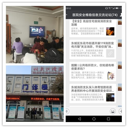 为更好开展119消防安全宣传月活动,增强医院职工消防安全防范意识,提高自救逃生能力,我院保卫处围绕宣传主题,通过打印电子横幅、摆放宣传展板、微信推送、安全知识答卷和循环播放教育短片等多种方式开展了消防安全宣教工作,活动时间从11月6日持续至30日。
