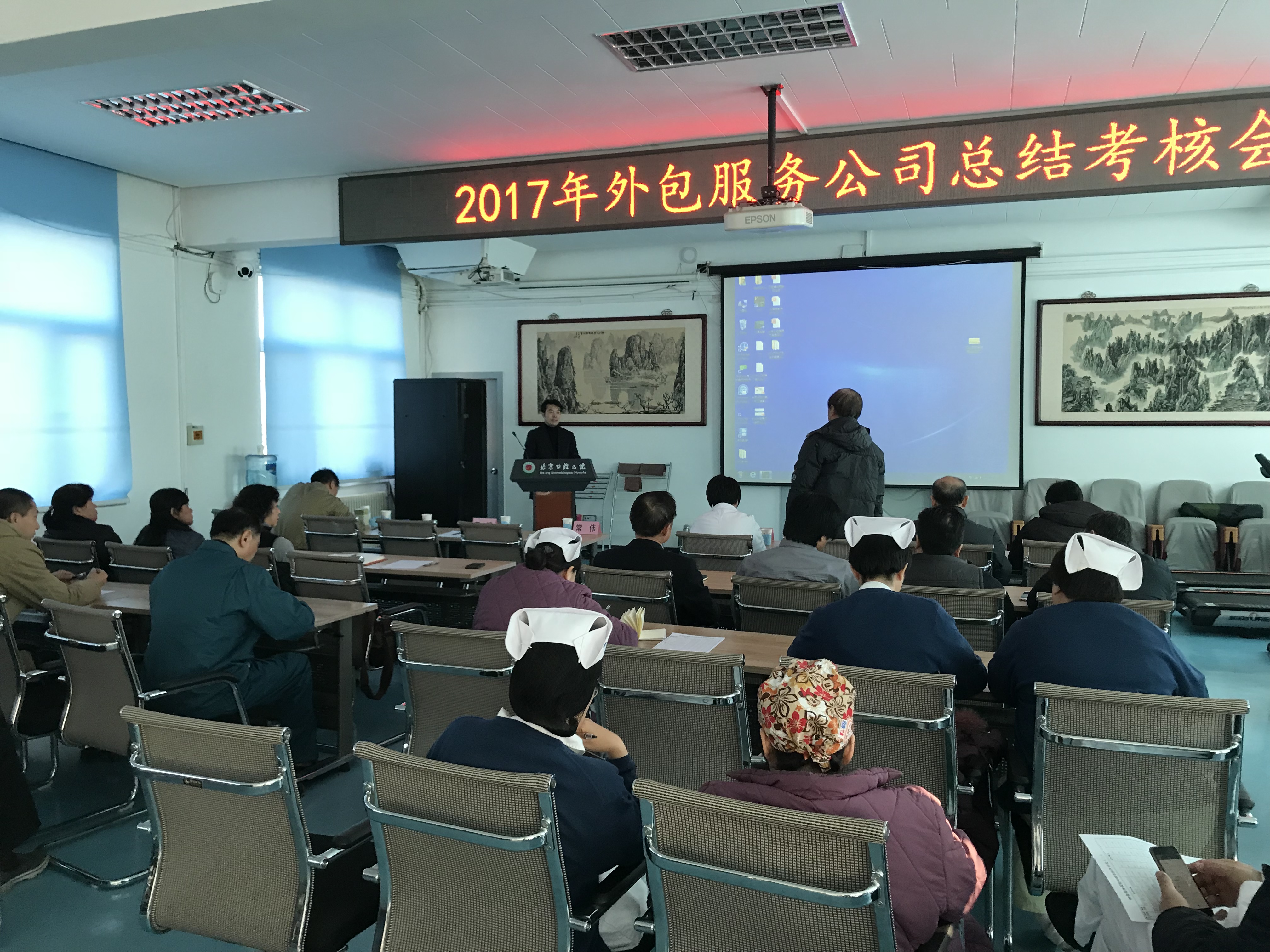 为增强我院外包服务公司责任意识,提升服务质量水平,总务处于12月1日上午组织召开了2017年度外包服务公司总结考核会,医院部分职能科室主任、临床科室护士长、职工代表及总务处全体职工参会。