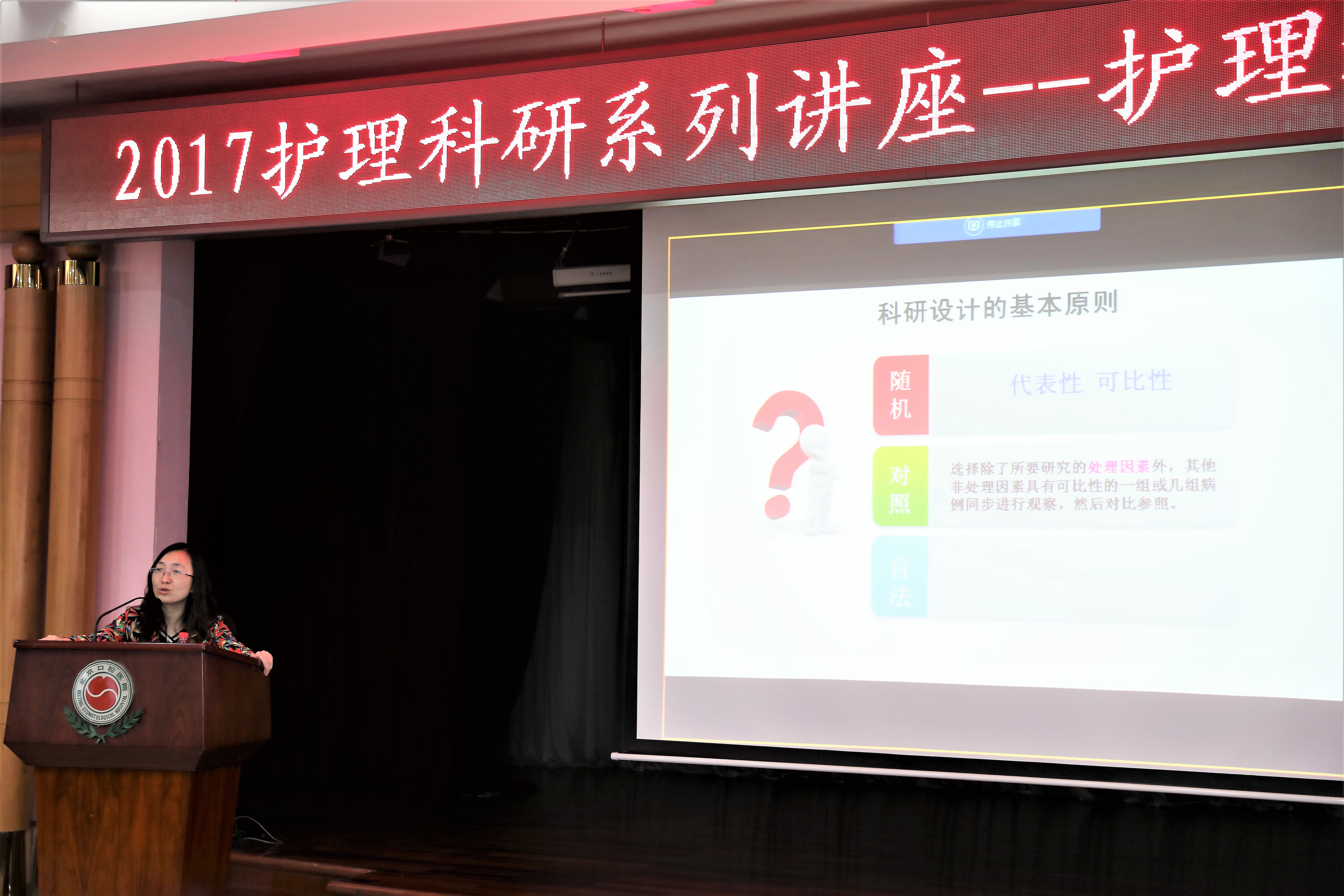 杨芳宇副院长从如何正确书写申请课题标书入手,依次讲述了怎么在临床中发现护理问题,从问题中确立科研课题,寻找研究背景、确立研究对象,以及研究对象的排除标准,尤其重点讲解了研究中设立对照组、实验组应遵循的原则等。最后用一篇实例论文讲述了一个完整课题的格式、结构、组成,以及根据研究成果撰写论文的注意事项。