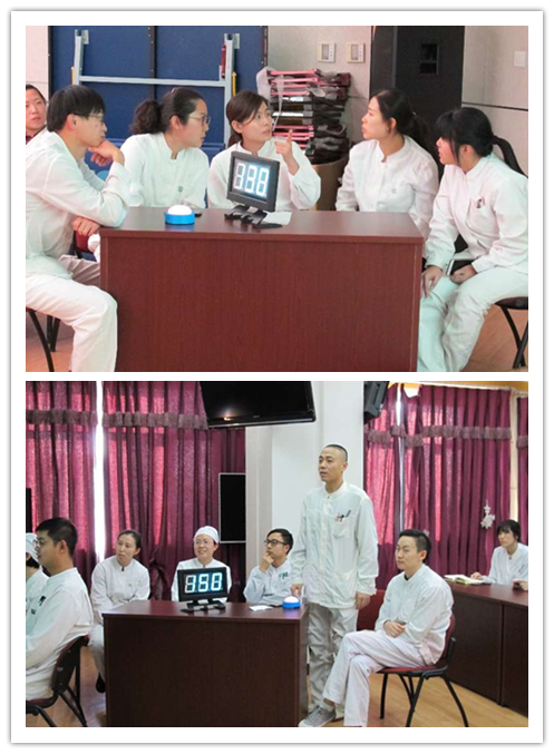 口腔修复工艺制作中心主任李靖桓首先做开场介绍。本次活动共分两部分,第一部分为专业知识竞赛决赛。竞赛自今年9月开始举办,科室人员分8支队伍进行小组循环赛,经过3轮预赛12场角逐,最终选出4支队伍进入总决赛。