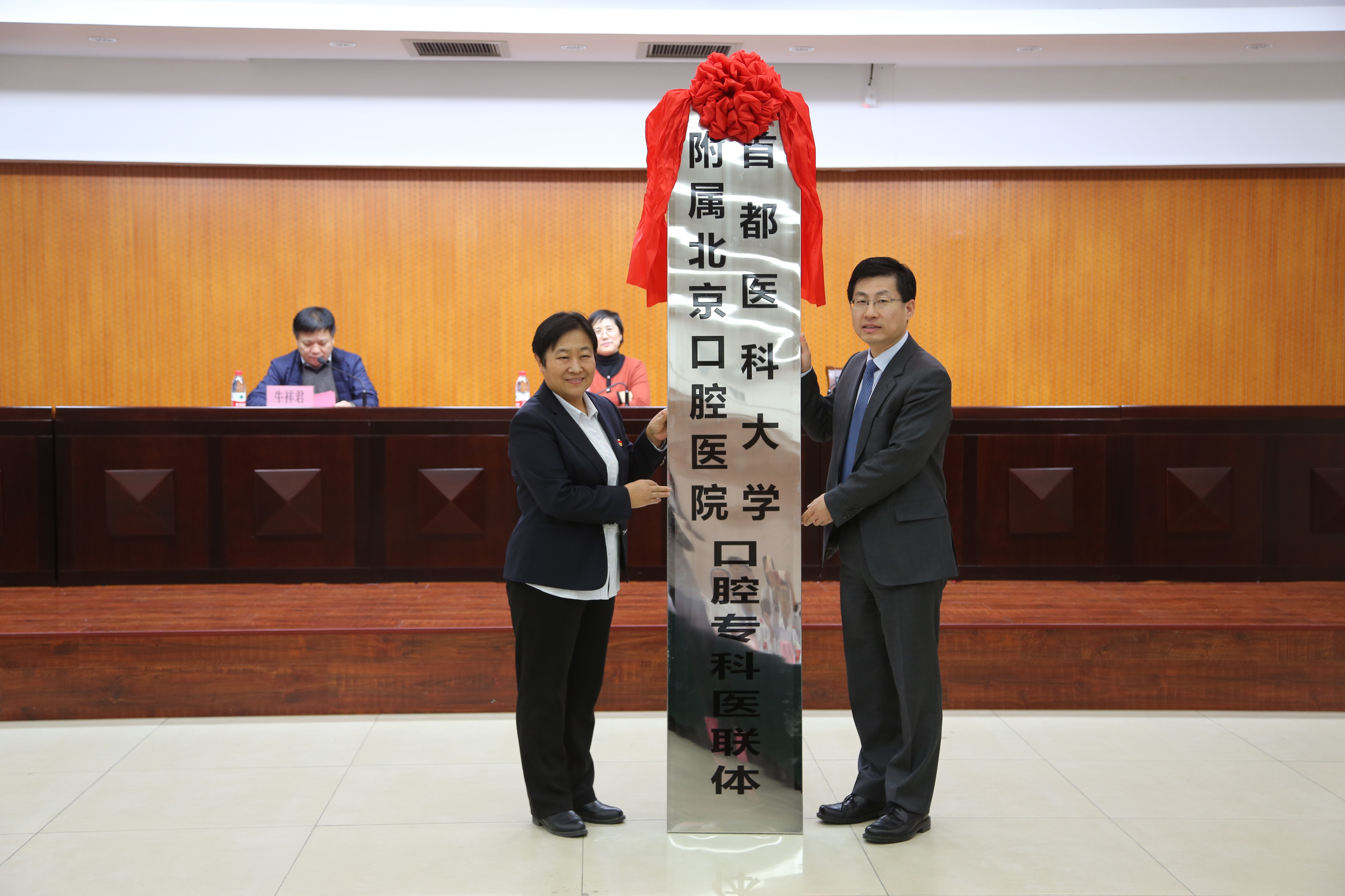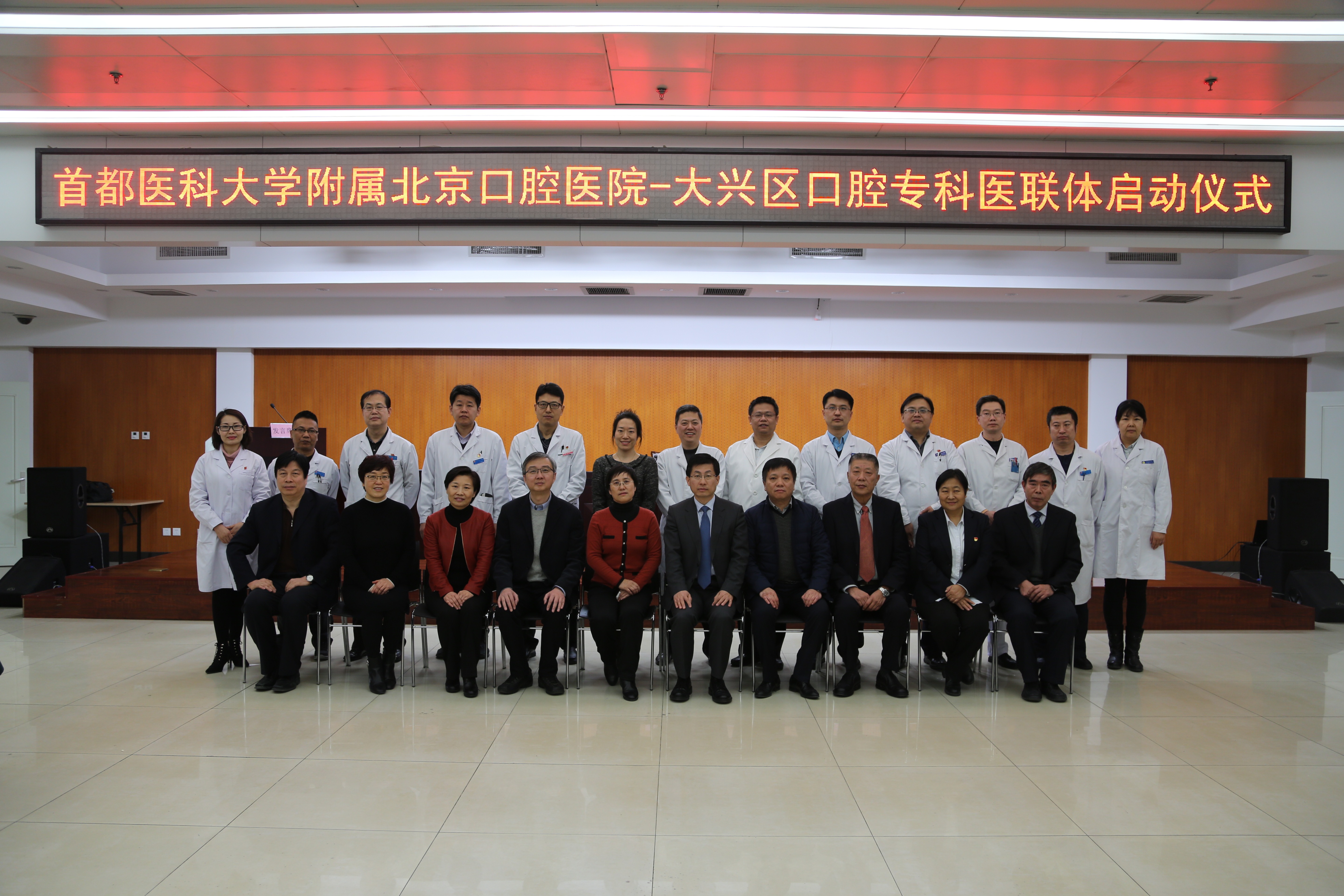 根据北京市卫计委《关于<北京市区域医疗联合体系建设指导意见>的通知》、《北京市人民政府办公厅关于进一步推进基层医疗卫生机构综合改革的若干意见》等文件精神,为了更好地促进深化医药卫生体制改革,推进有序衔接的服务体系,更好地发挥各级医疗机构的能动性,推进北京口腔医院口腔专科医联体的建设,2018年1月11日下午,我院与大兴区6家区直属医院签署了《北京口腔医院大兴区口腔专科医联体协议书》,合作期限为三年。我院院长白玉兴、副院长厉松、医务处处长苏静出席了签约仪式,参加签约仪式的还有大兴区卫计委主任李爱芳以及6家专科医联体成员单位院长。会上,我院白玉兴院长为医联体成员单位授予了“首都医科大学附属北京口腔医院口腔专科医联体”标牌。