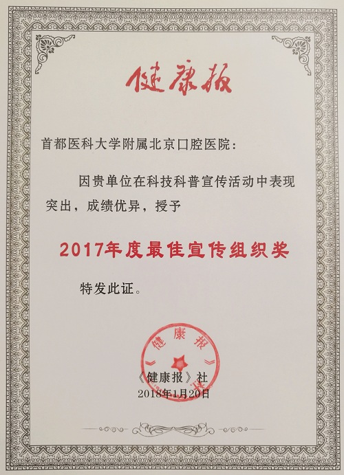 我院有幸成为9家市属上榜医院之一,荣获“2017年度最佳宣传组织奖”。