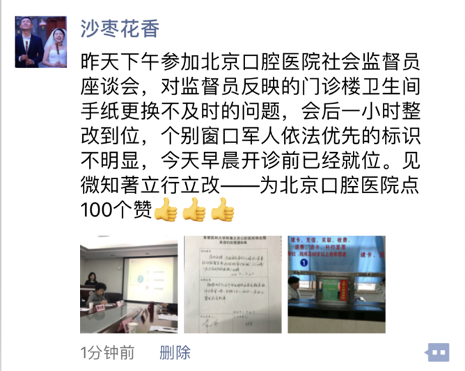 我院将进一步加强与社会监督员的沟通联系,积极采纳意见建议,即提即改、立行立改,持续提高医疗服务质量,通过发挥社会监督员作用为提升首都人民口腔健康水平做出贡献。