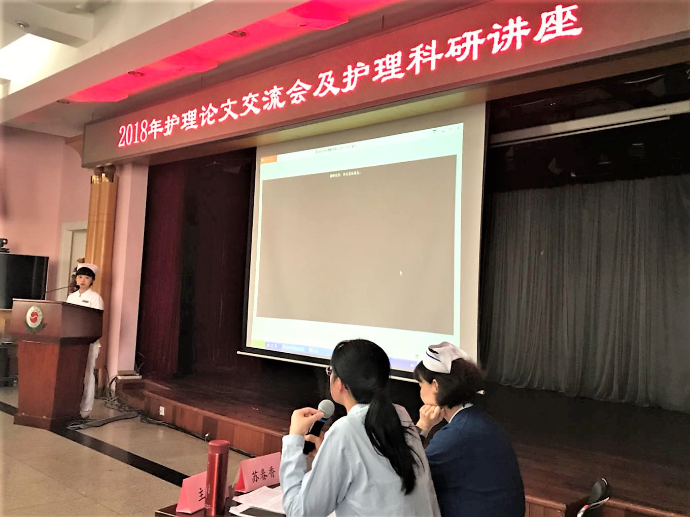3月22日,护理部在多功能厅举办了2018年护理论文交流会及第一季度护理科研讲座。副院长刘淑敏、护理部主任王鸣、全体护士长及部分护士参会。