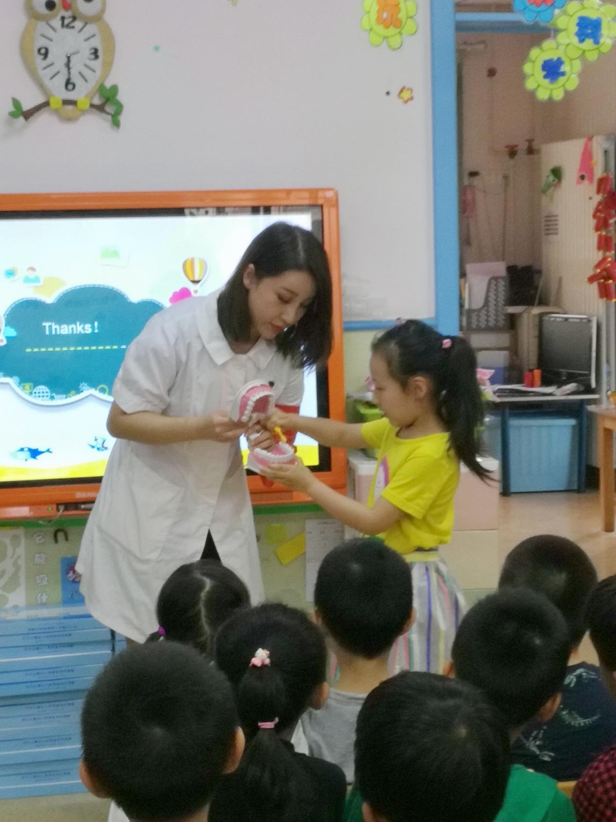 活动通过现场教学讲解及互动交流,让小朋友们边玩边学,从而激发孩子们爱护牙齿的美好意愿,养成良好口腔卫生行为习惯,掌握自己刷牙的能力。