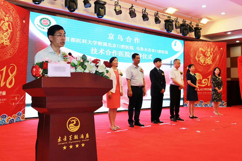 为深入贯彻落实健康中国战略,促进东部和西部地区合作交流,在北京市和乌鲁木齐市人民政府支持下,我院与乌鲁木齐市口腔医院本着优势互补、资源共享、互惠共赢、共同发展的原则,于2017年12月29日签署了医疗技术合作协议书。据协议,双方在医疗技术、人才培养、学科建设、科研教学、远程医疗以及医院管理等方面开展合作,首批重点建设学科为牙周专业和颌面外科专业。