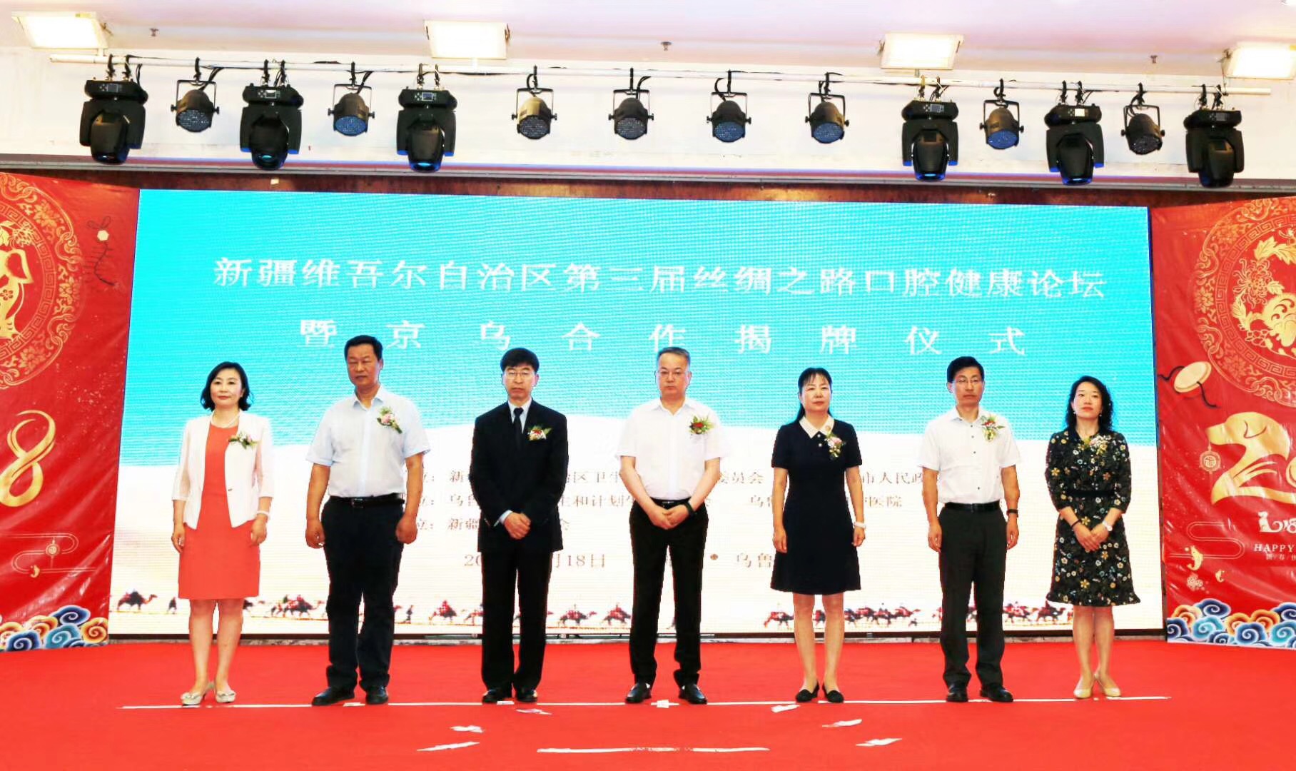 2018年7月18日,在乌鲁木齐市口腔医院举行了技术合作医院揭牌仪式,进一步落实“首都带首府”医疗卫生精准合作精神:两地医疗卫生机构的一对一、点对点对接工作。我院院长白玉兴、医务处处长苏静赴乌鲁木齐参加了揭牌仪式。