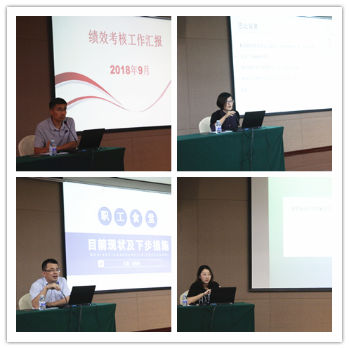 会议包括五部分内容。人力资源处处长兼绩效办主任周斌进行了2018年绩效考核分析及修订加强考勤制度的讲解,使职工代表全面了解了绩效考核及考勤制度;工会副主席马艳艳组织职工代表对我院工会第七届经费审查委员会委员替补工作的决定进行了表决;总务处副处长常伟就职工食堂当前保障现状及下一步工作措施进行了详细介绍;规划建设处韩冰详细讲解了我院迁建选址的过程及目前的工作进度情况,使职工代表们对我院未来的迁建规划有了深刻认识;财务处邓贺然对工资明细单进行讲解并解答了职工代表提问。