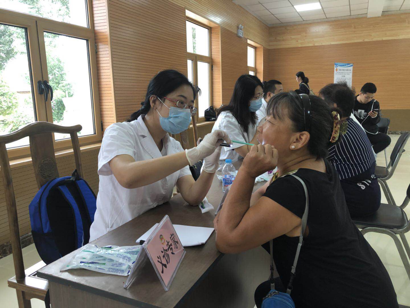 专家为东河村村民进行口腔检查