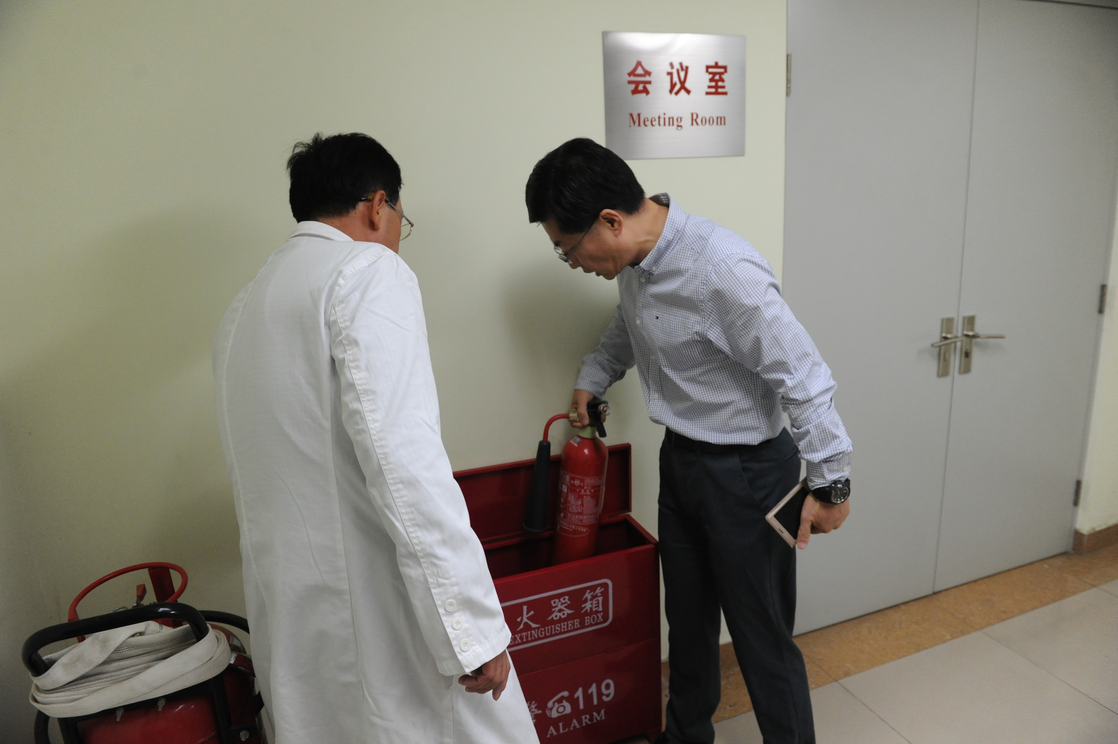 在研究所、病理科、检验科、药剂科,重点检查了危化品的管理、灭火器的使用和有效期等,听取了科室人员的意见,随机检查了研究所报警系统的应急响应。在信息中心,针对近期曾发生的信息故障,详细询问了原因及改进措施。要求加强设备维护,做好突发事件的应急预案。在药剂科,还查看了毒性药品的管理,核对数量,针对存放不规范的问题,要求尽快整改,严格按照毒麻药品管理。