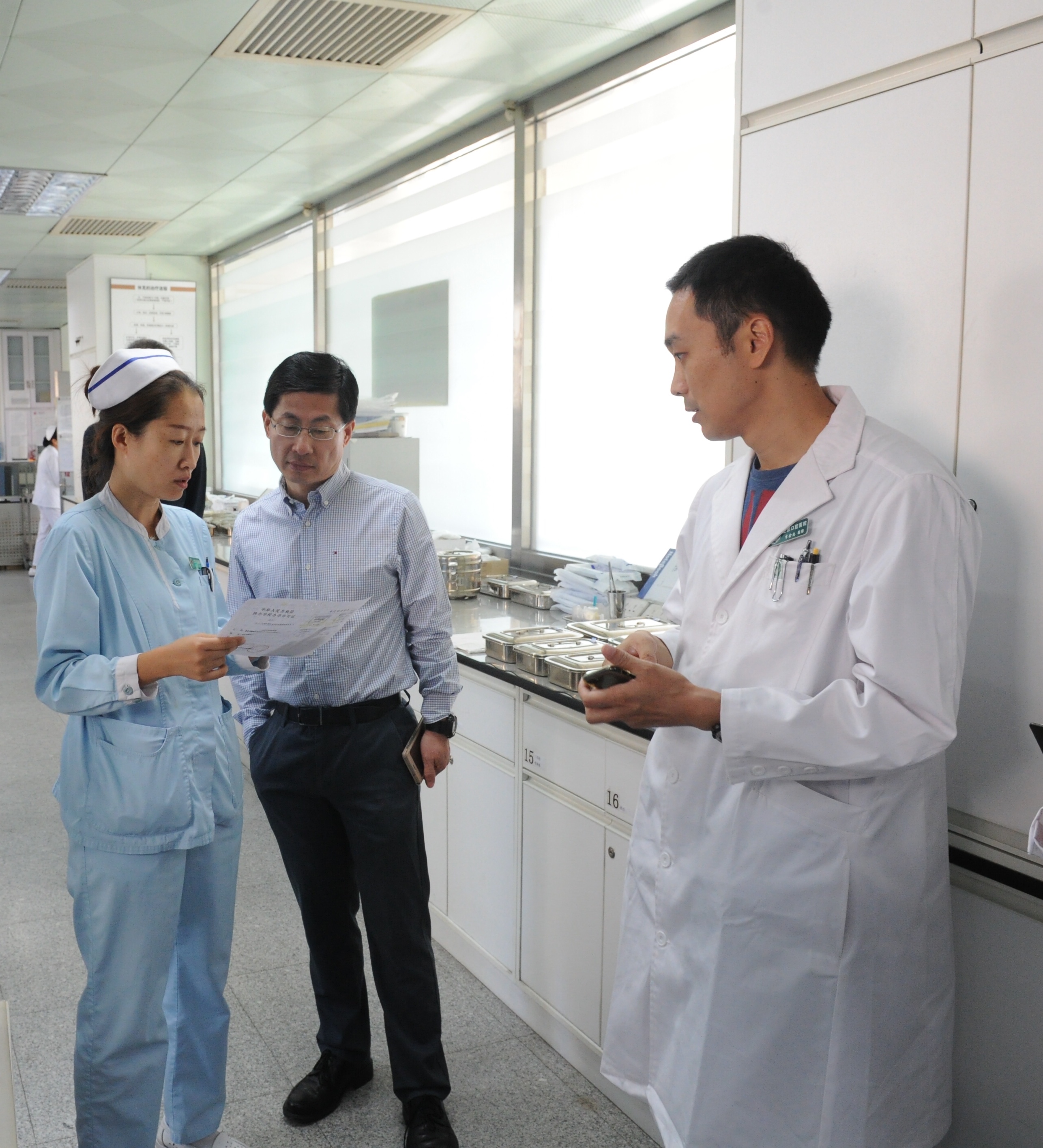 2018年9月30日下午,北京口腔医院开展2018年国庆节前行政大查房,由白玉兴院长、郑东翔书记带队,刘淑敏副院长、厉松副院长、刘静明副院长、王志强副书记(挂职)及部分职能部门负责人一同参加。此次查房对院内的重点岗位及地点、部分临床科室进行了安全与医疗应急巡查,同时向部分职工对新院区科室规划的意见进行了了解。