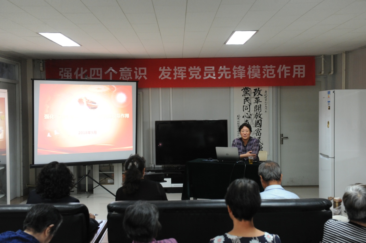 2018年9月21日上午,刘淑敏副院长在离退休同志活动室为离休党员讲解了“强化四个意识” 发挥党员先锋模范作用的党课。