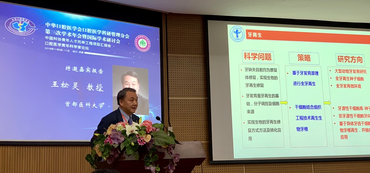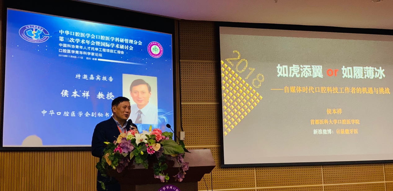 本次学术会议特邀多名国内外口腔医学及交叉领域的院士、专家学者进行讲座。首都医科大学副校长王松灵教授、我院侯本祥教授作为特邀报告嘉宾分别做了关于“口腔颌面再生进展与展望”和“自媒体时代口腔科技工作者的机遇与挑战”的精彩专题讲座,汤晓飞教授、范志朋教授受邀担任青年科学家论坛的评委及分论坛主持人。