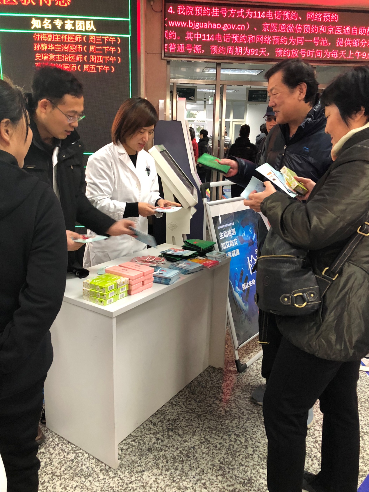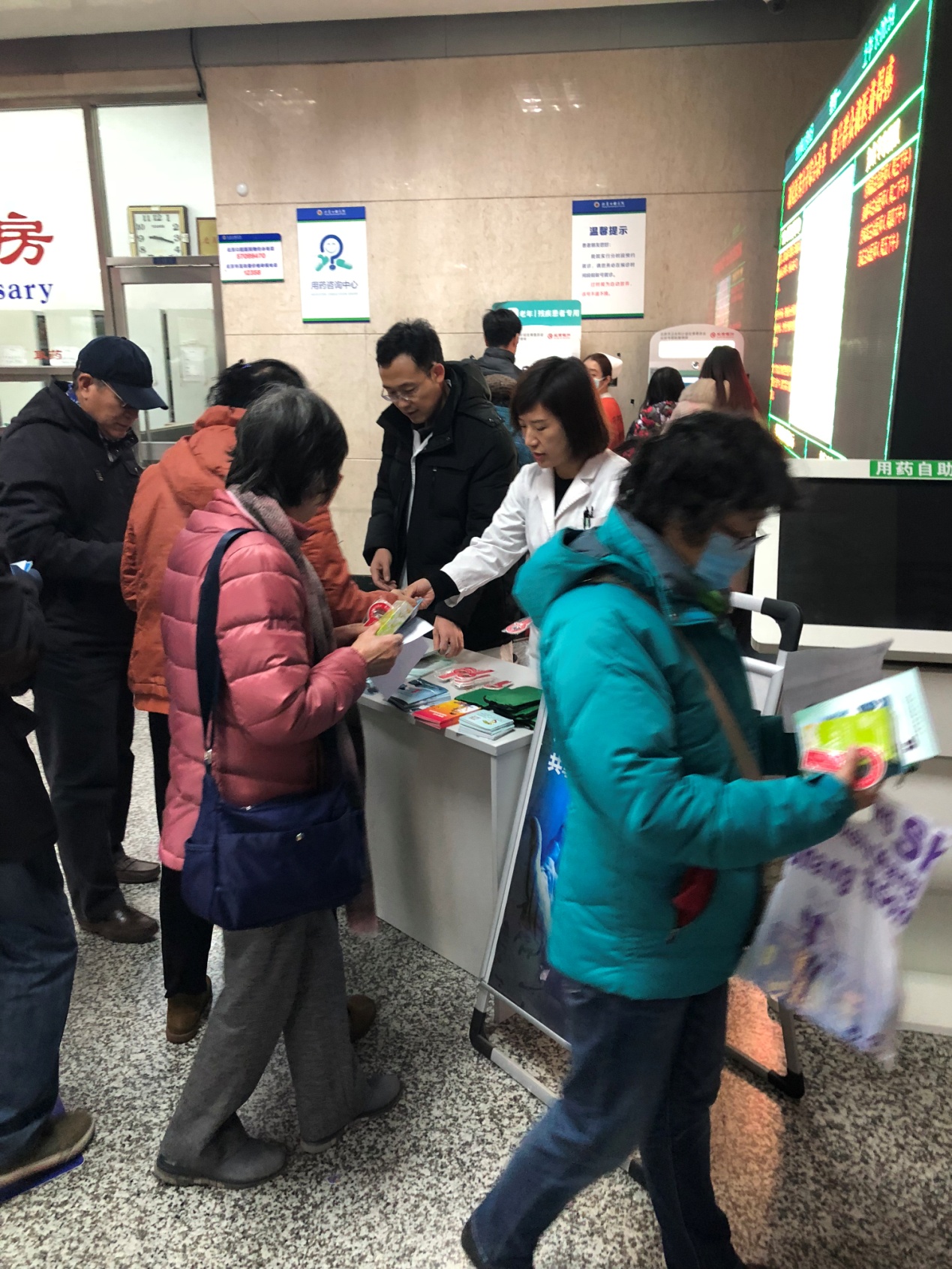 此次活动围绕“主动检测 知艾防艾 共享健康”的主题,在医院门诊大厅和重点科室向就医患者和医务人员进行了艾滋病防治知识宣传。在就诊早高峰时段,在门诊大厅电子显示屏醒目位置滚动播放宣传语,张贴宣传海报,向就医患者及医务人员发放宣传品及宣传资料,并现场进行了艾滋病防治知识宣教,同时通过我院官方微博进行防艾宣传。口腔黏膜科是我院发现HIV感染者较多的科室,科室人员也积极参与到本次宣传活动中,并在科室候诊区对患者进行艾滋病防治知识宣传。