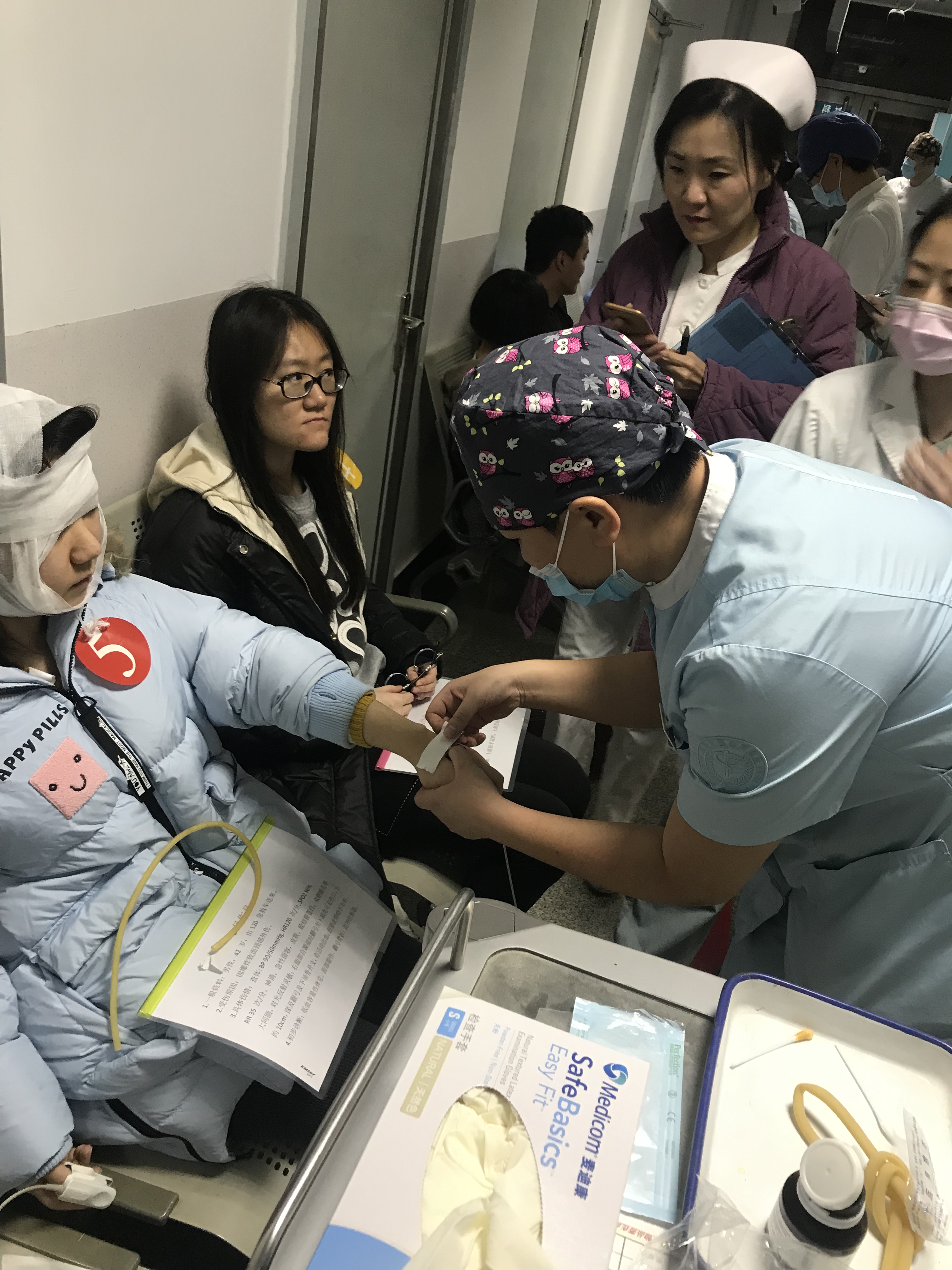 为进一步完善临床危急重症患者抢救流程,不断提高临床医务人员面对突发事件的应对能力,经过缜密组织,医务处与护理部于12月20日模拟突发群体伤患者来院就诊的紧急场景,在院内进行了急救演练。为保证应急演练的真实性,演练事先未通知任何部门。