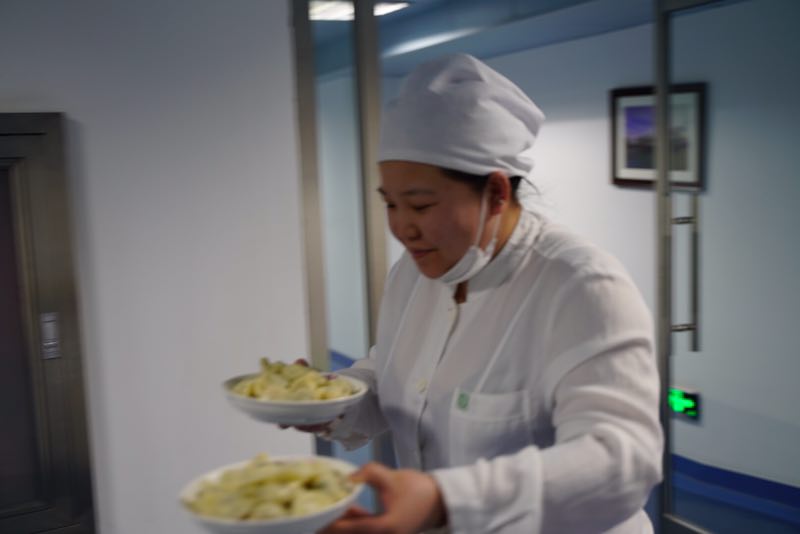联谊会进行当中,食堂工作人员端送来一盘盘热腾腾的饺子和各类美食。大家在欢声笑语中品尝着甜蜜与感动,感受到医院两部是一家的亲情。