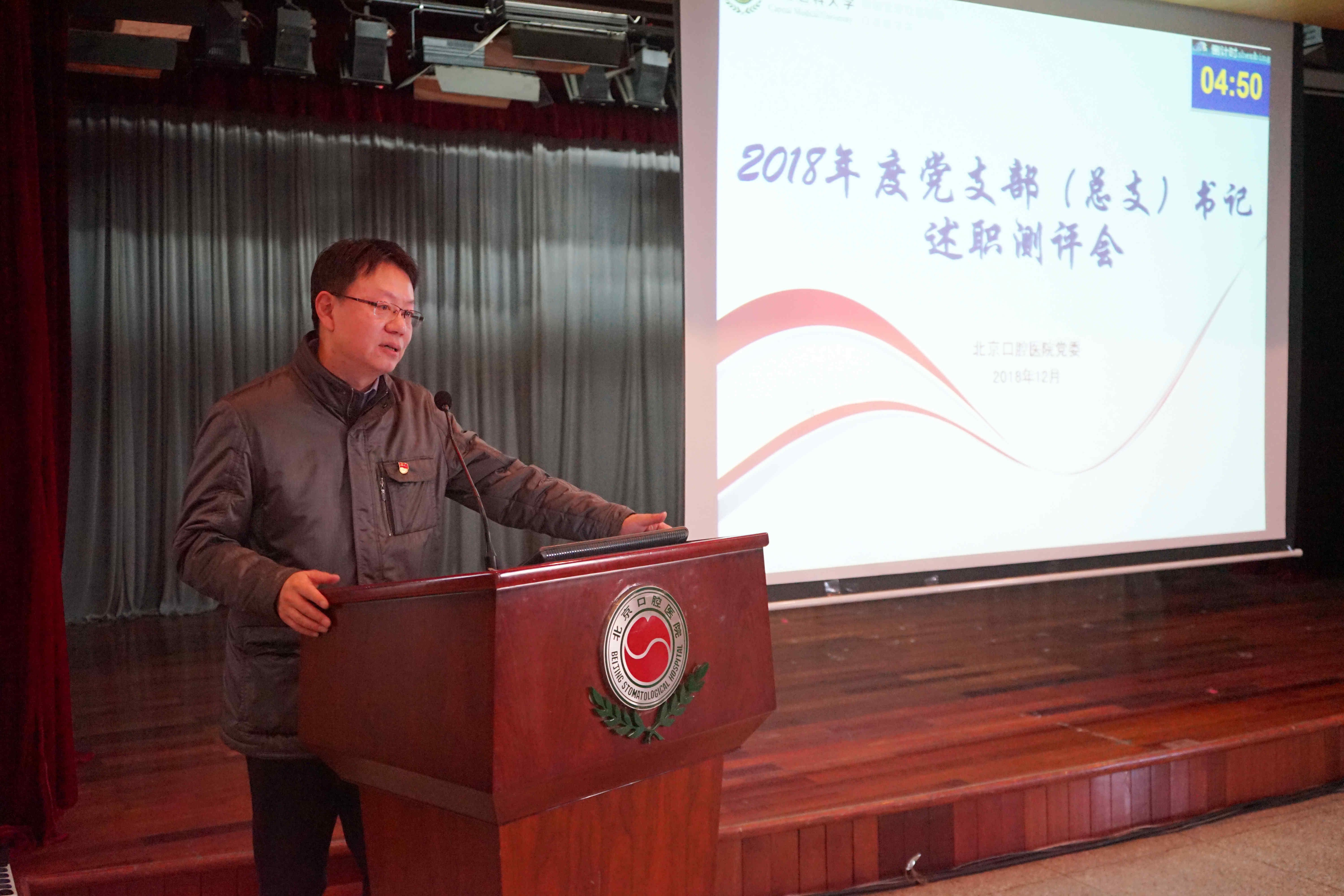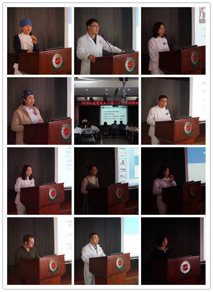 党支部(总支)书记围绕党支部发挥政治引领作用情况、支部规范化建设及党员队伍建设情况、基层党建重点任务及党建绩效指标落实情况、履行支部党风廉政建设第一责任人职责情况、党建创新活动等五个方面展开述职,充分展示了各自在服务人民群众、落实重点任务、助力医院建设等工作中的亮点和特色。述职结束后,与会人员对2018年度在职党支部(总支)书记履职情况进行了测评投票。