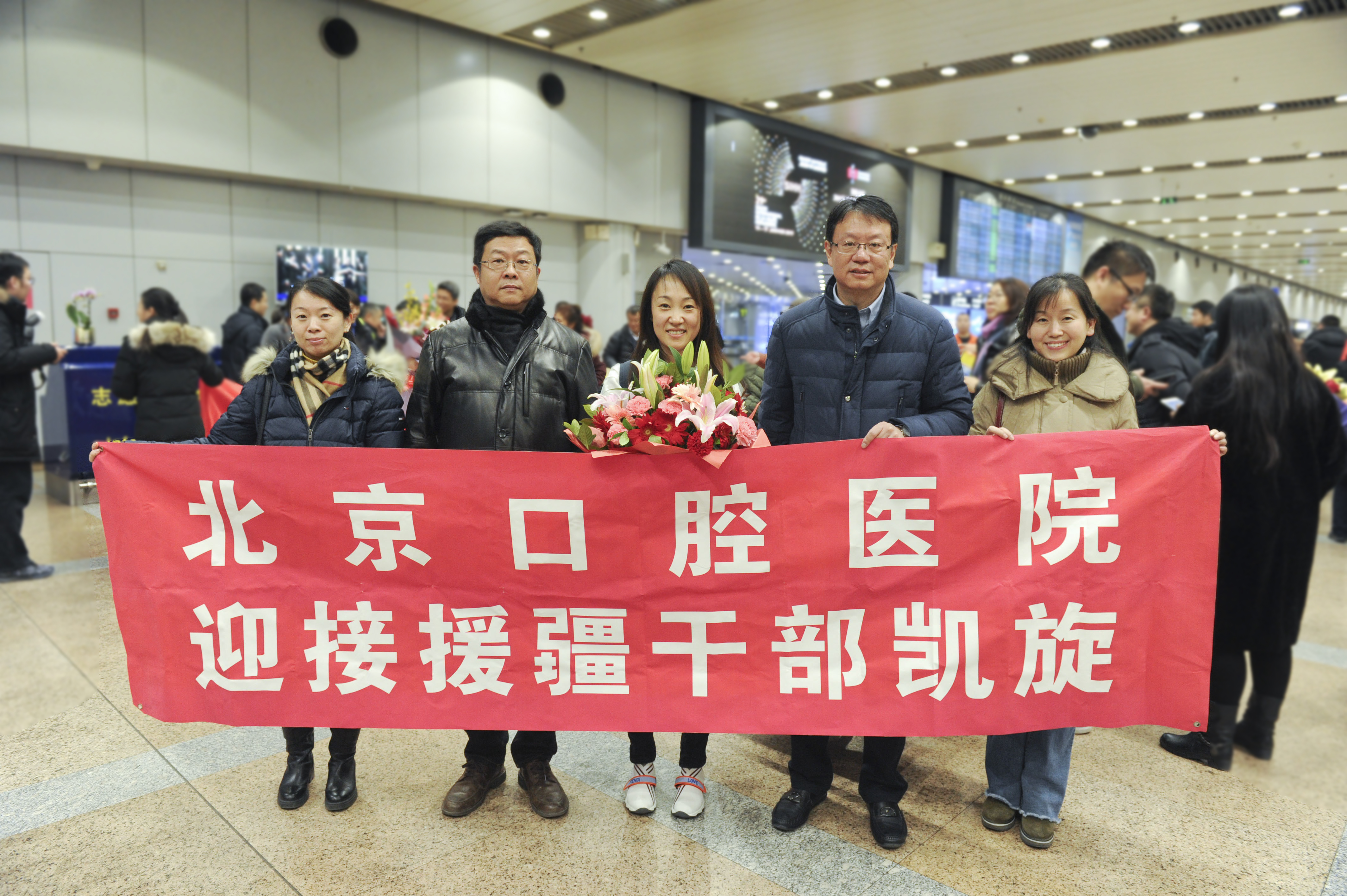 2019年1月14日,我院援疆干部常攀辉同志圆满完成为期一年的援疆任务返京。我院党委书记郑东翔带领党办主任韩秀欣、王府井部综合科主任葛化冰、王府井部综合党支部书记赵湘等到机场迎接她的归来。