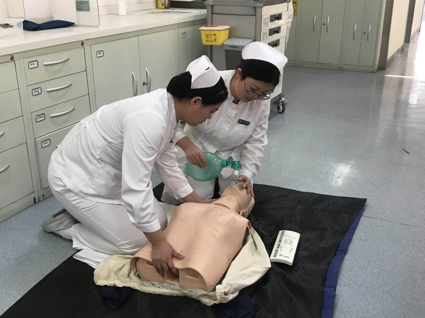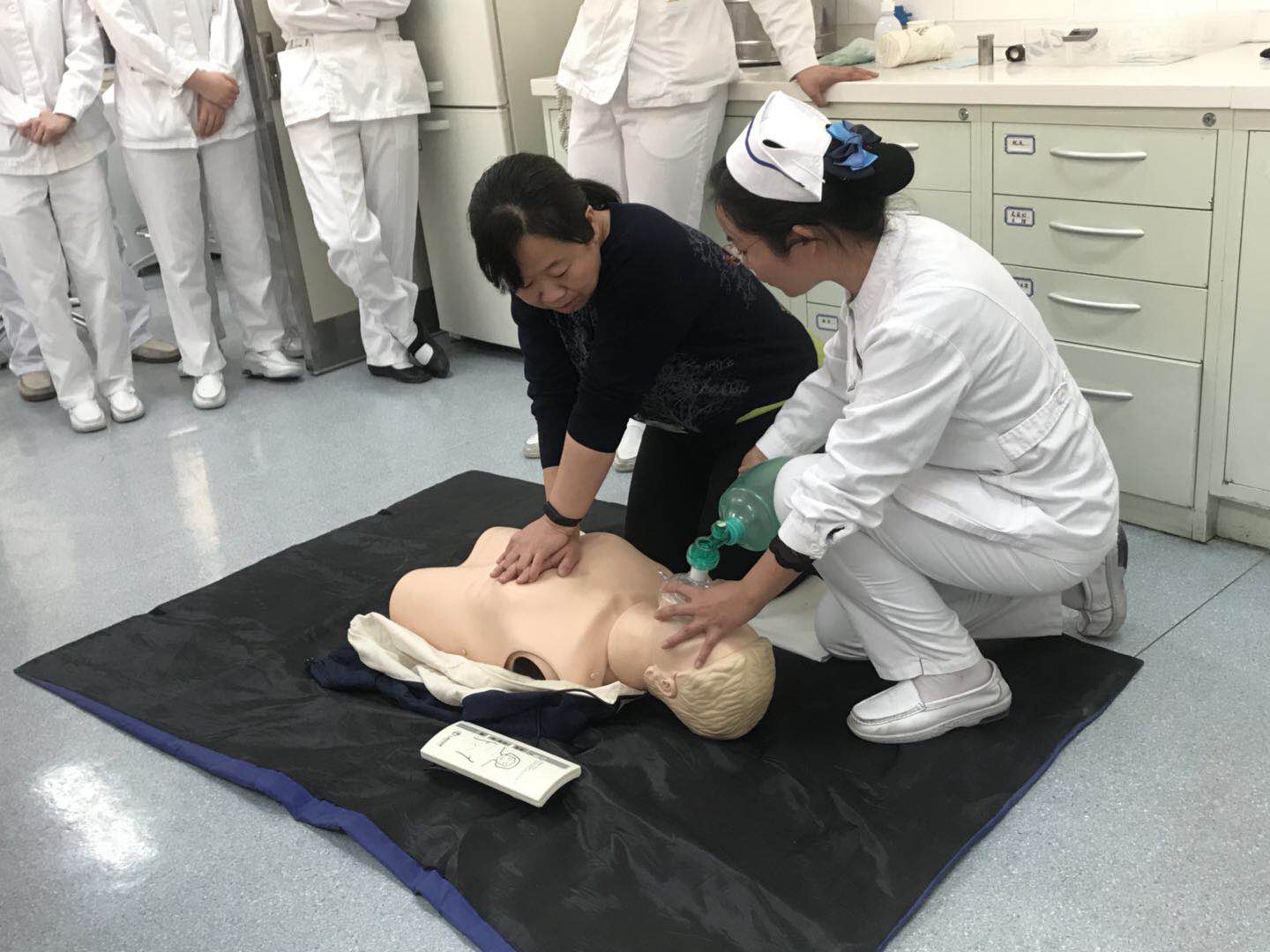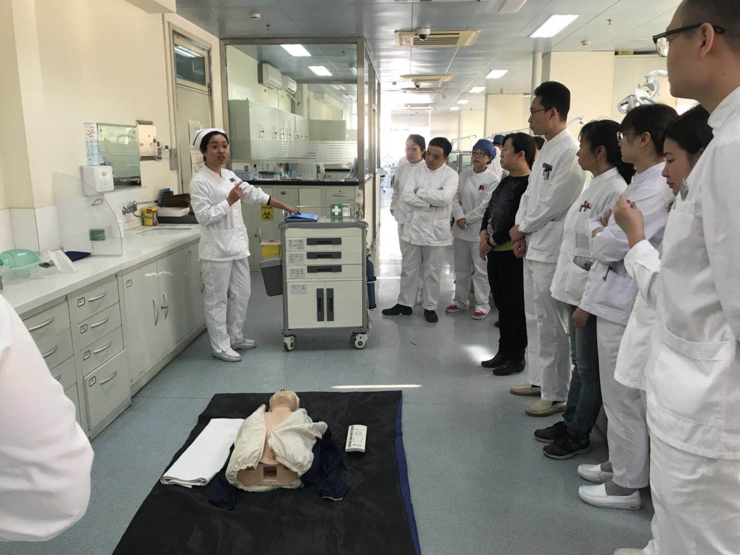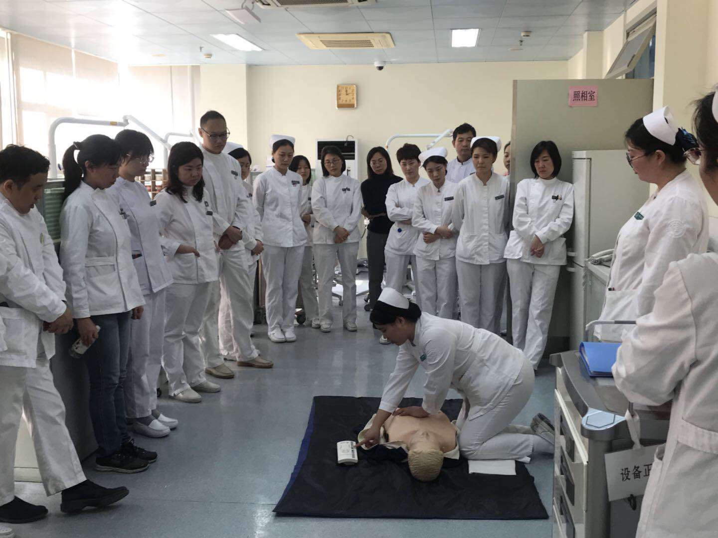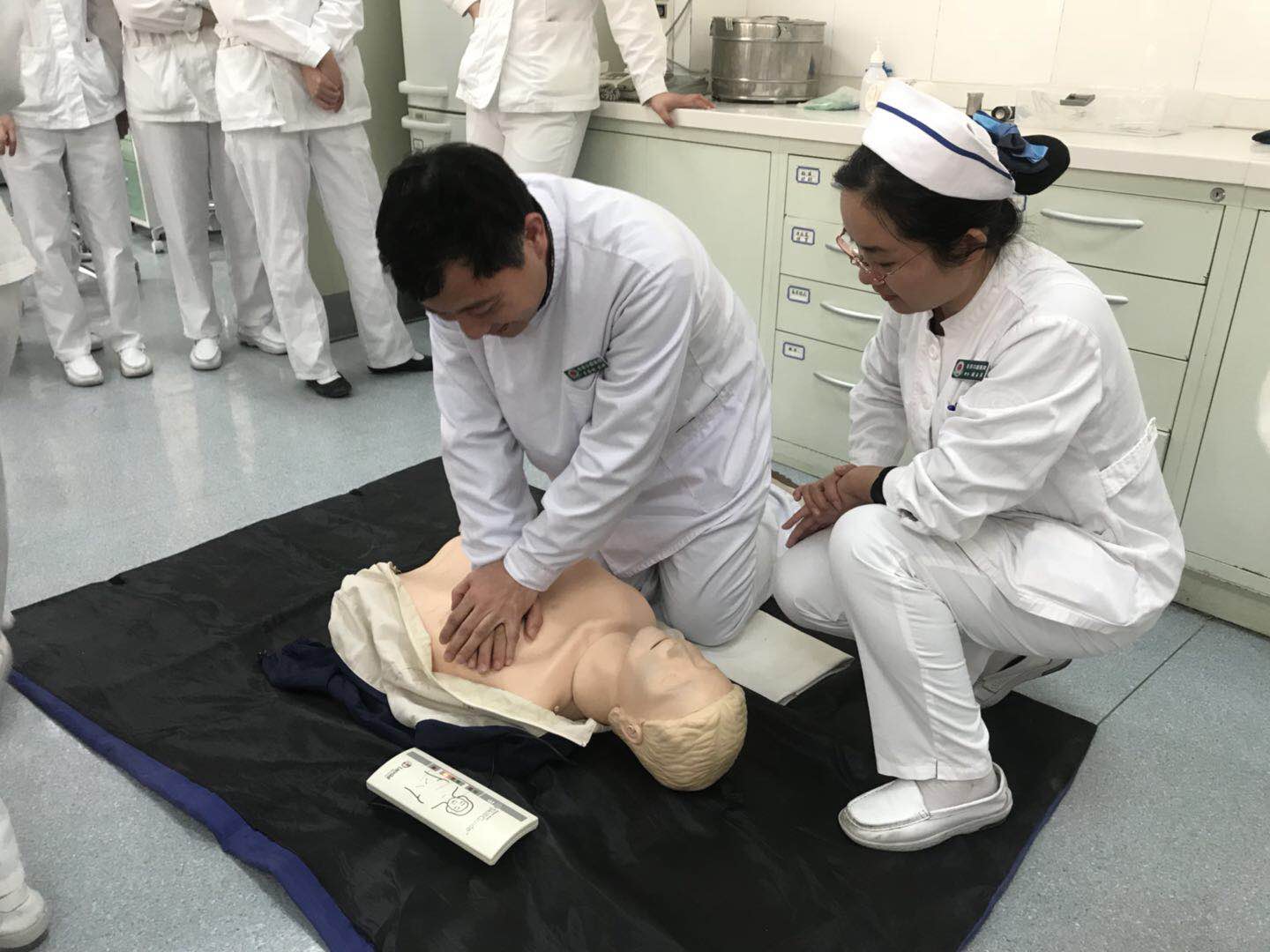 培训首先由副护士长张玉革为大家讲解了心肺复苏流程及急救操作要点,随后随机挑选两名护士进行操作演练。护士谭晓彤和王磊边讲解边演示,为大家进行了一次直观、全面的急救培训,期间还不时与大家互动。有的医生提出对急救车药品不熟悉,科里负责每月进行常规急诊培训的护士又仔细介绍了急救车常用药品使用情况。培训最后,医护人员进行了实际演练,做到心中牢记,学以致用。