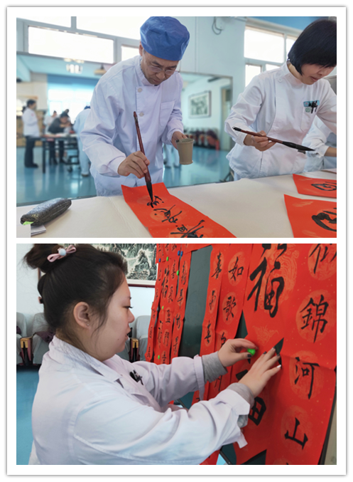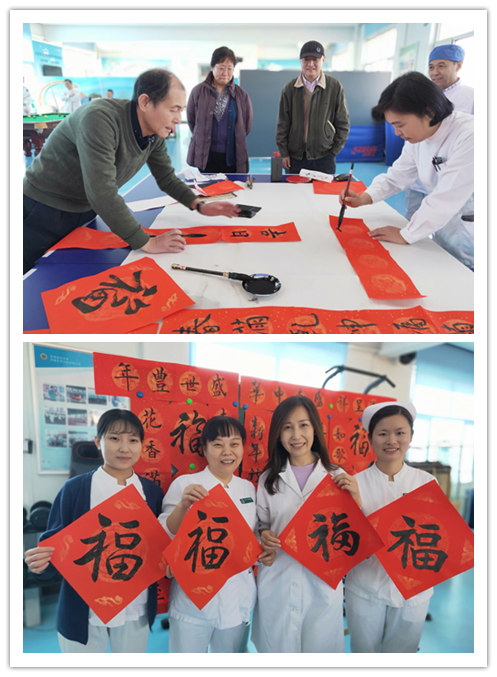 2019年农历春节将至,为庆祝新年到来,让院职工感受传统风俗,营造欢乐、喜庆、祥和、文明的节日氛围,1月28日中午,书画协会在门诊楼五层职工之家开展了“迎新春 送春福”活动。工会主席刘淑敏到场和职工们一起“迎新送福”。