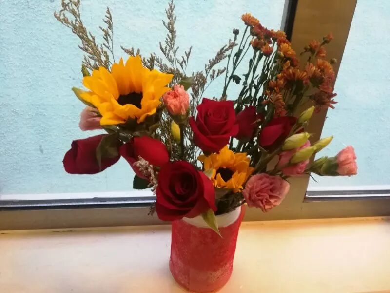 刚刚过去的清明小长假,赵红特意在网上订购了鲜花装点驻地房间,没有花瓶就找来一个罐子外面贴上彩纸做装饰。