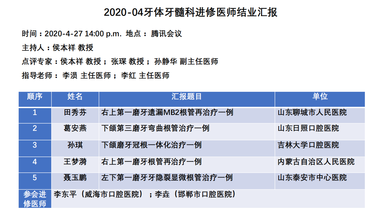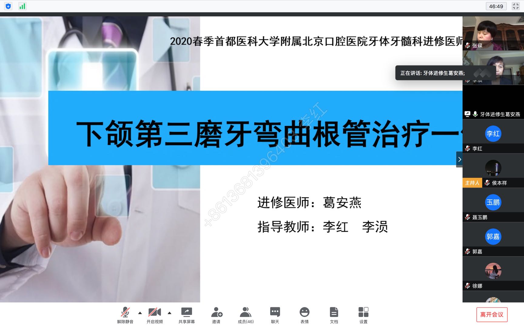 创新形式 网络教学 —— 牙体牙髓科在线举办进修医师结业病例报告会