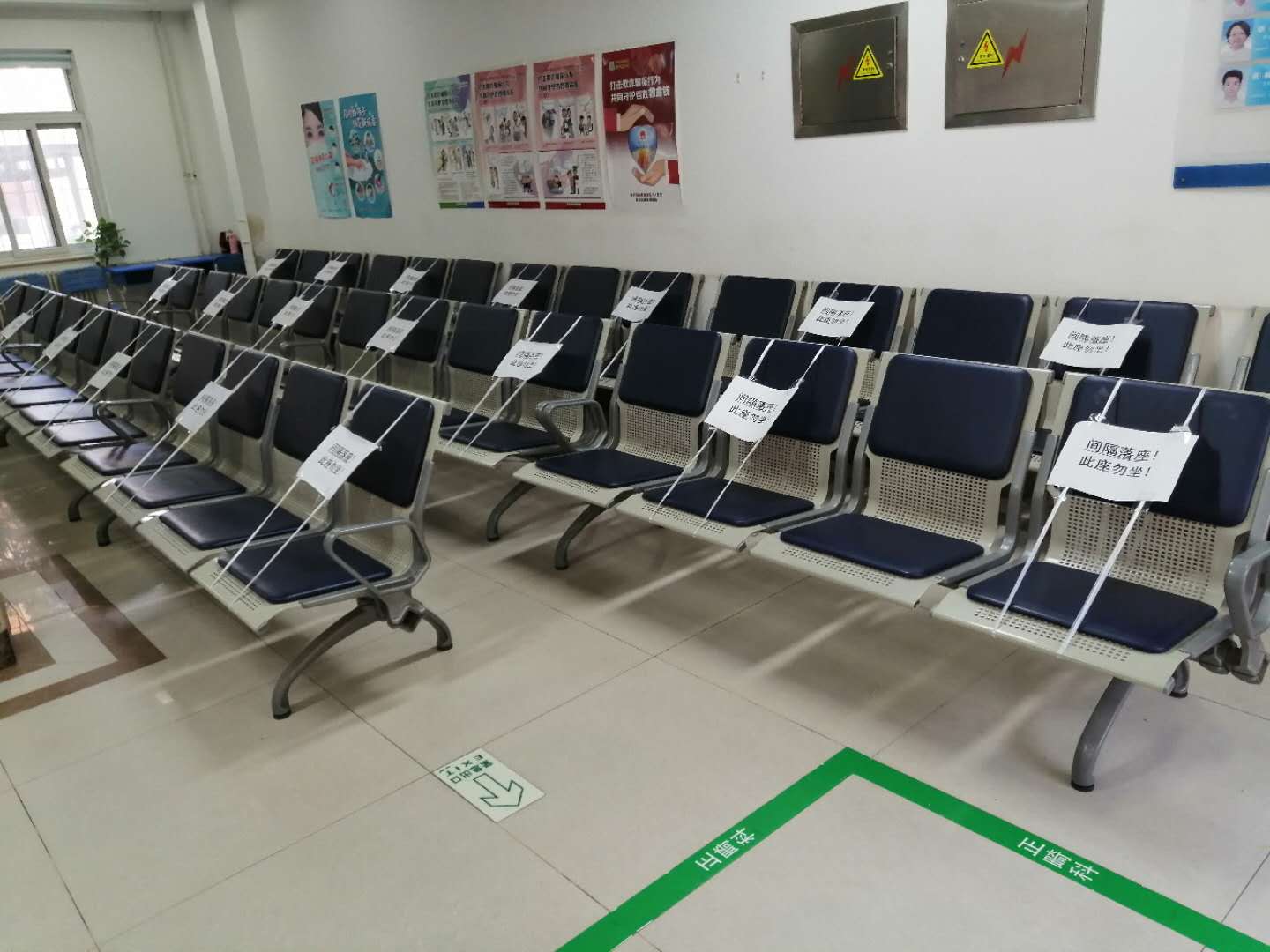 重新布局候诊椅间隔,增加候诊等候空间。针对节后就诊人群增加的实际情况,总务处对全院候诊椅的间隔座位进行了重新调整,由原来的间隔两座调整为间隔一座,并张贴安全提示,进一步提高候诊椅的利用率,保障患者候诊的安全距离。