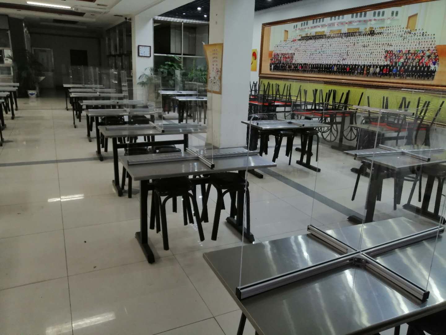 食堂餐桌加设隔断,保障职工就餐安全。针对五一后食堂就餐人员将大幅度增加的实际情况,为保障医院职工的健康安全,总务处对食堂餐桌及多功能厅的桌子安装透明隔断,进一步减少职工就餐时的近距离接触,努力创造相对独立的就餐空间,保障职工就餐安全。