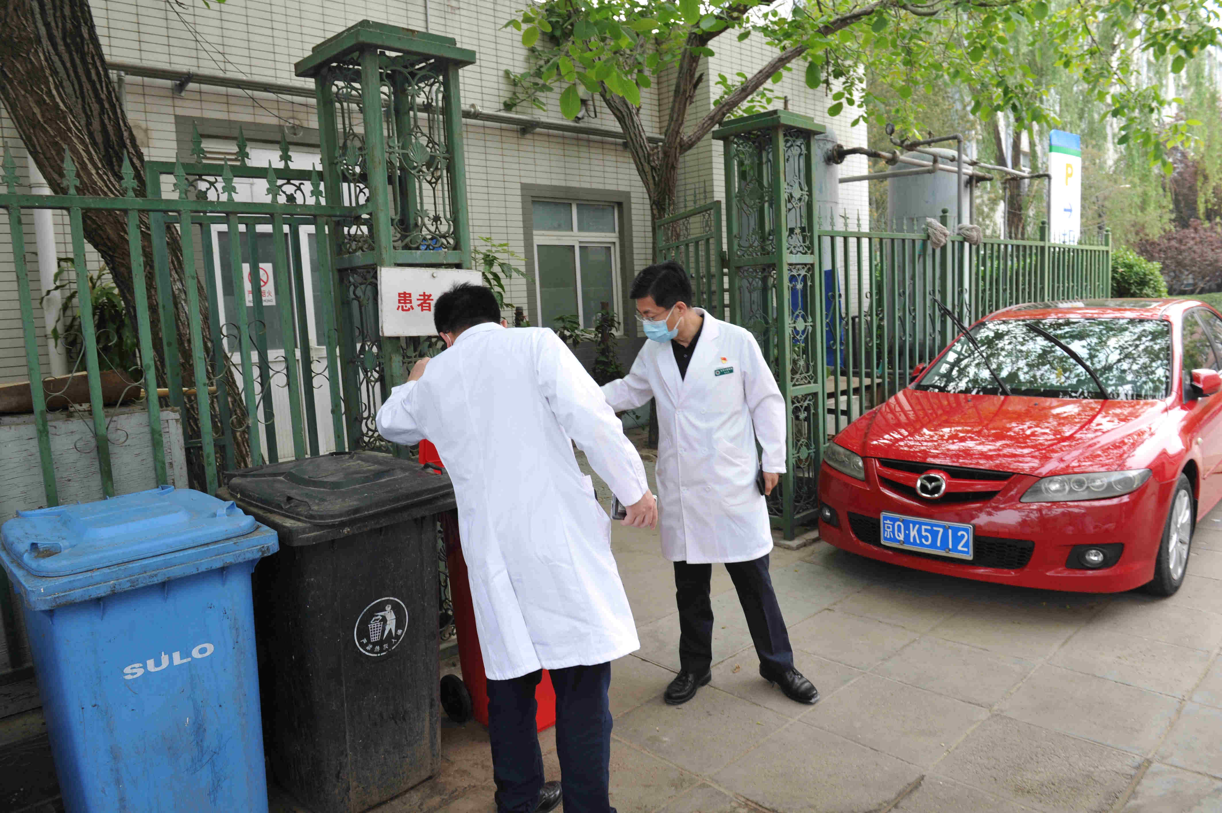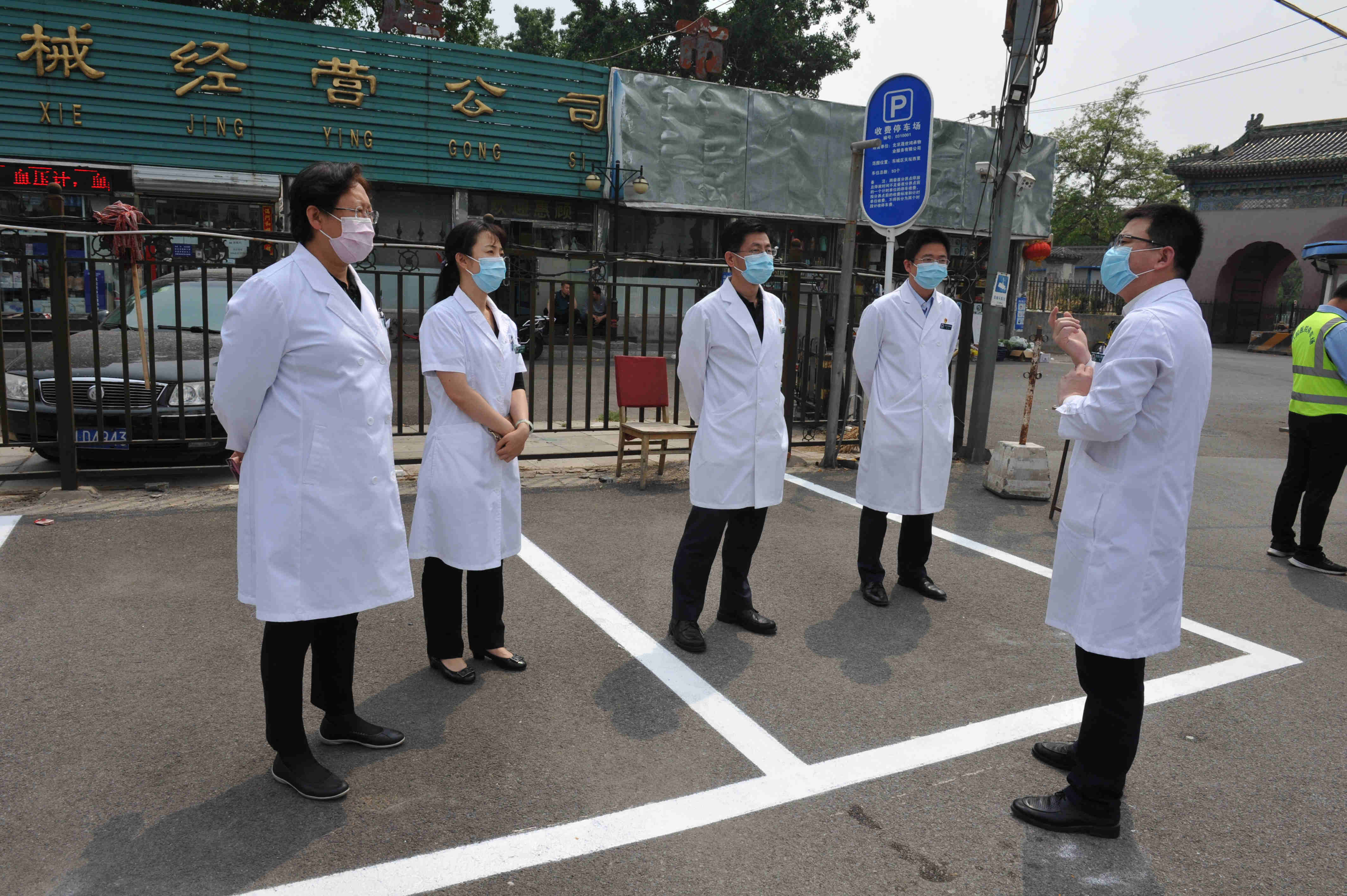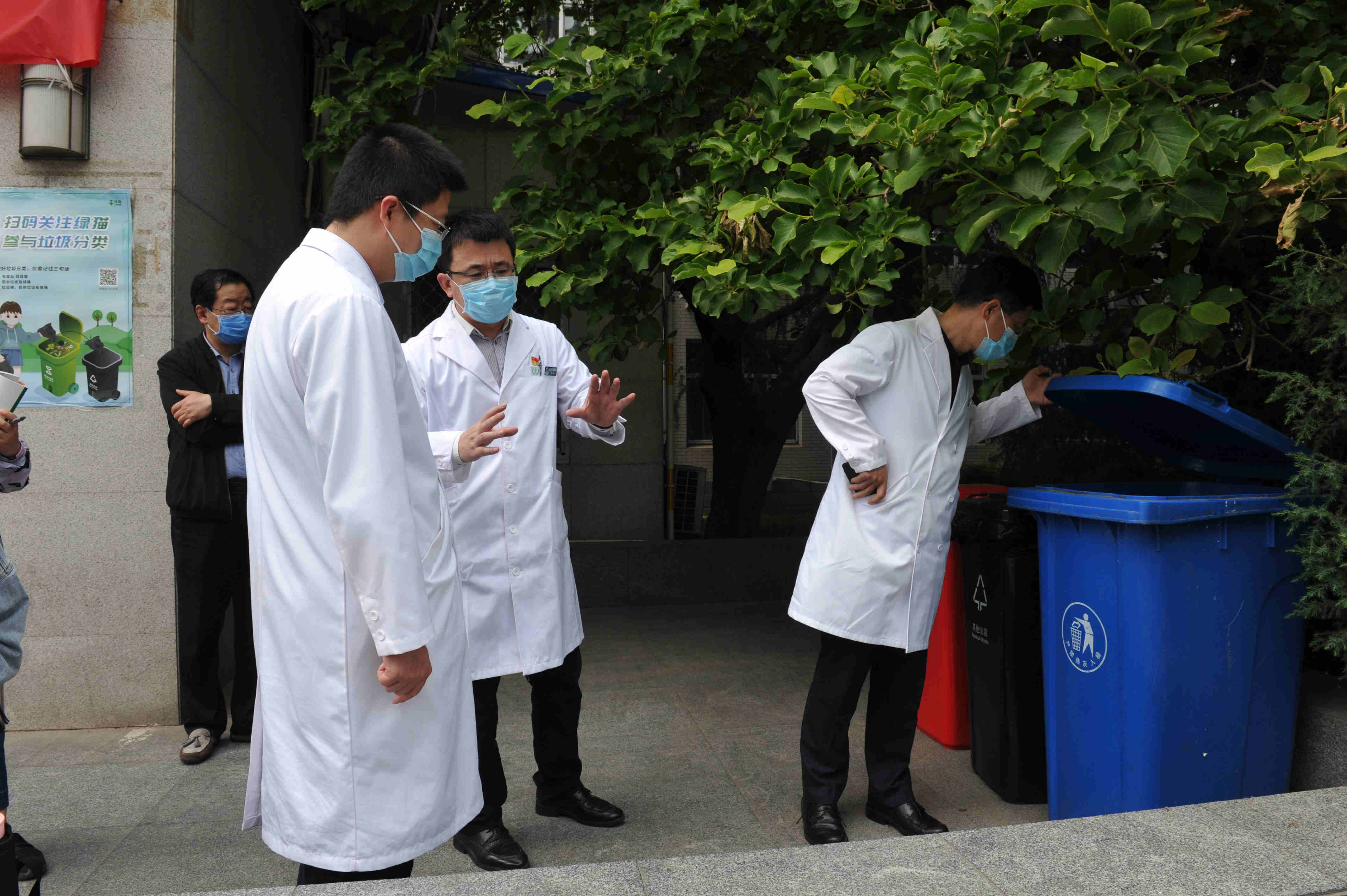 院领导首先来到院外停车场,了解职工停车及车位分配情况。在医院门诊楼门口驻足查看入院扫码分诊实行情况,并对垃圾分类及垃圾桶配置工作进行检查。