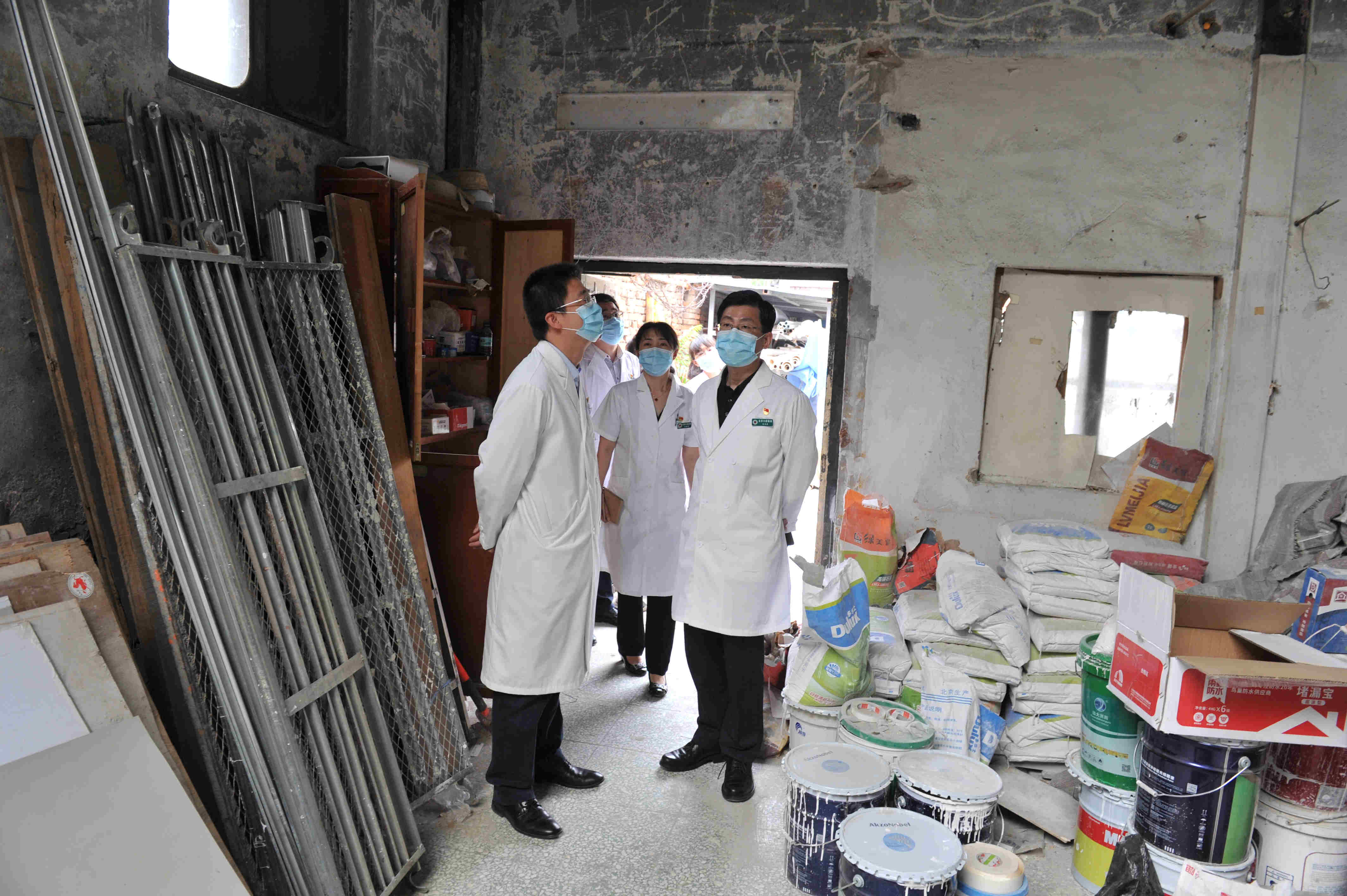 在刚刚完成装修改造的整形创伤外科,现场了解了粉刷一新的更衣室、会议室的布局规划和使用方案,以及病房收治患者、家属陪同情况。在同样装修一新的病房楼5楼会议室和正在施工中的2楼普通病房,院领导实地查看装修情况,叮嘱注意施工细节,确保安全。