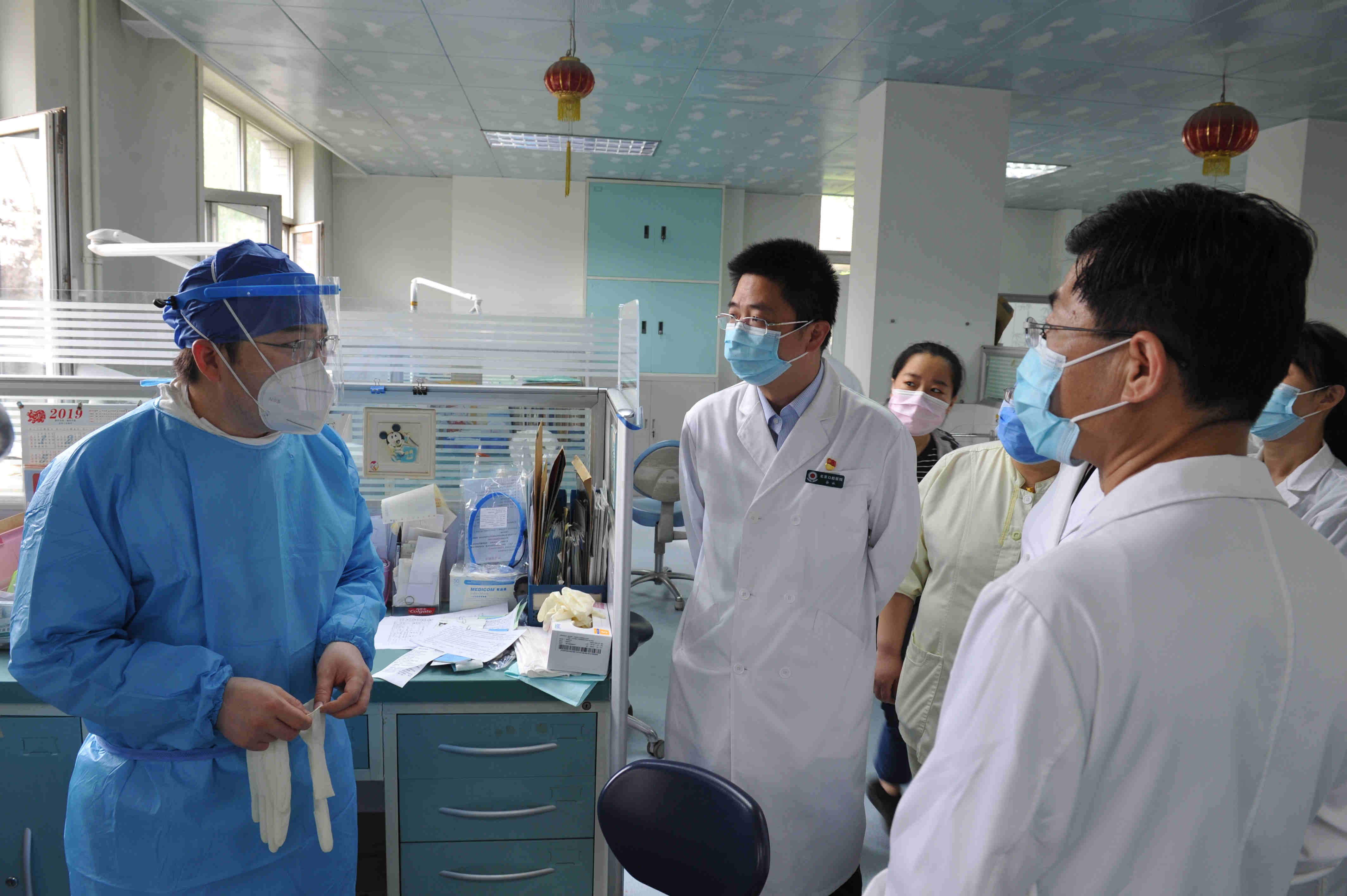 在牙周科,谷书记询问了患者就诊需求及治疗项目开展情况,检查了医护人员防护穿戴及诊室通风、空调使用等具体防控措施。在牙体科,就患者是否对就诊存有安全方面的顾虑等细节问题进行了询问。