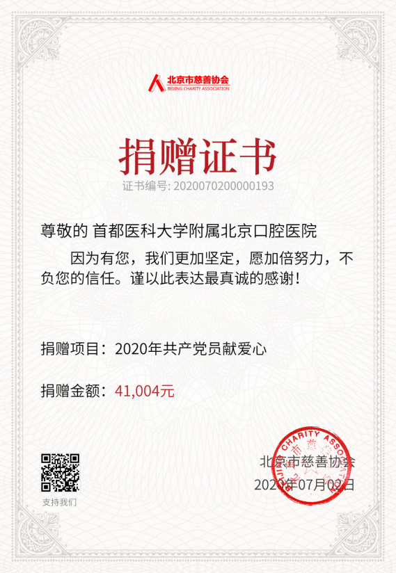 “共产党员献爱心”捐献活动是广大党员发挥先锋模范作用、体现党的先进性、弘扬中华民族扶贫济困传统美德的特色活动。在党的99周年华诞之际,我院广大党员干部群众积极响应号召,参与了捐助活动。今年,全院共有391人参加了捐助,其中包括375名党员、16名积极分子、群众及民主党派人士,捐款总额为41004元。善款已汇至北京市慈善协会,用于慈善医疗救助、助学助老、帮扶生活困难党员等项目,对因患大病导致生活特别困难的家庭或个人或家庭生活困难的学生、老人及党员群体进行救助帮扶。