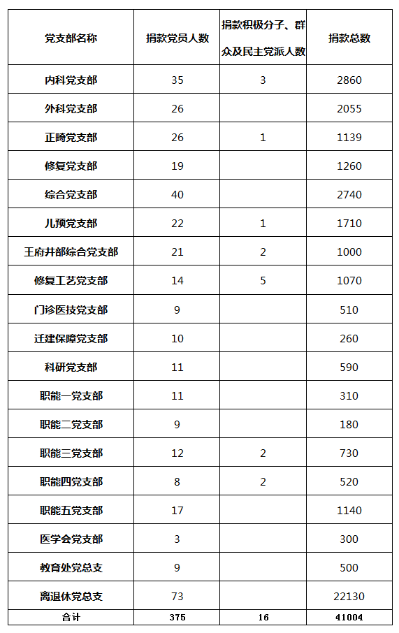 附:各党支部“共产党员献爱心”捐款情况汇总表