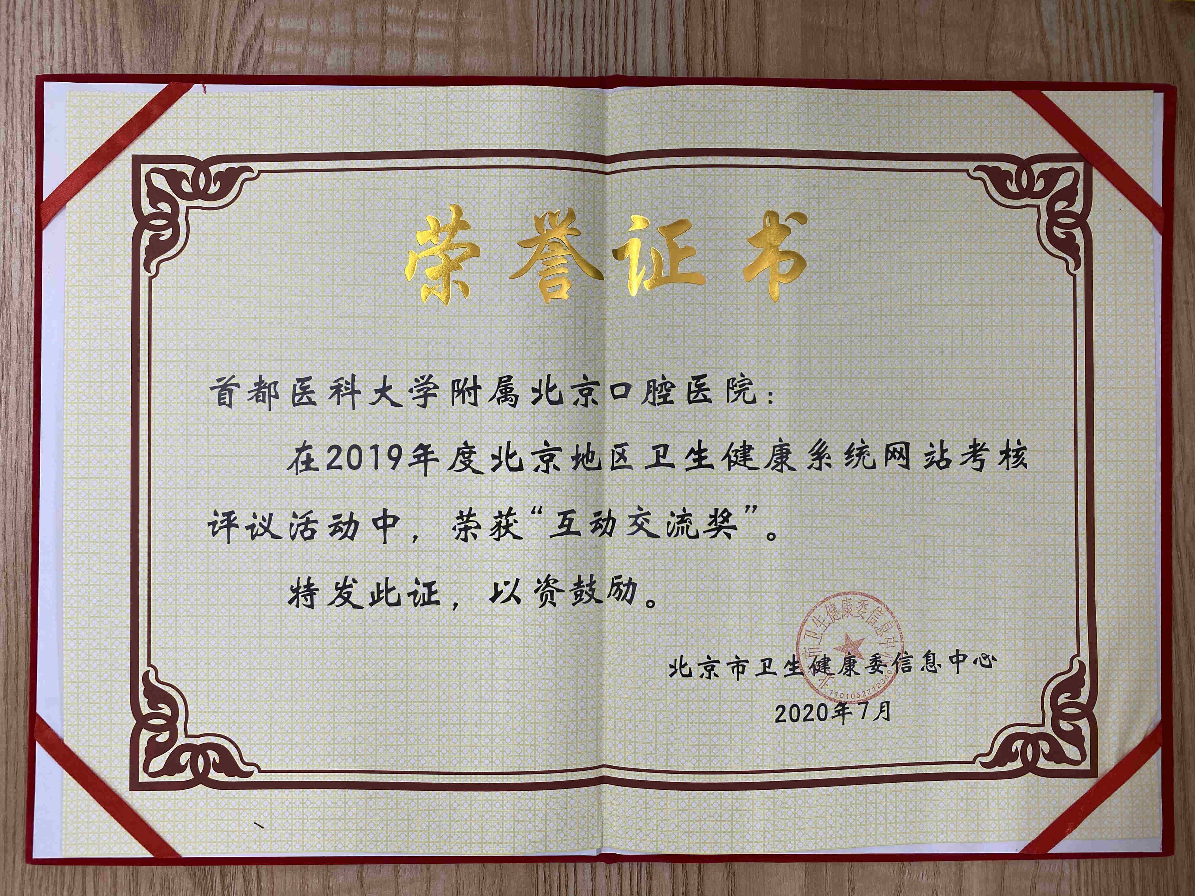 在近年来的北京地区卫生健康系统网站考核评议中,我院官网连获佳绩,2017年度荣获“信息公开奖”、2018年度荣获“优秀网站奖”、今年又收获“互动交流奖”,成绩喜人。