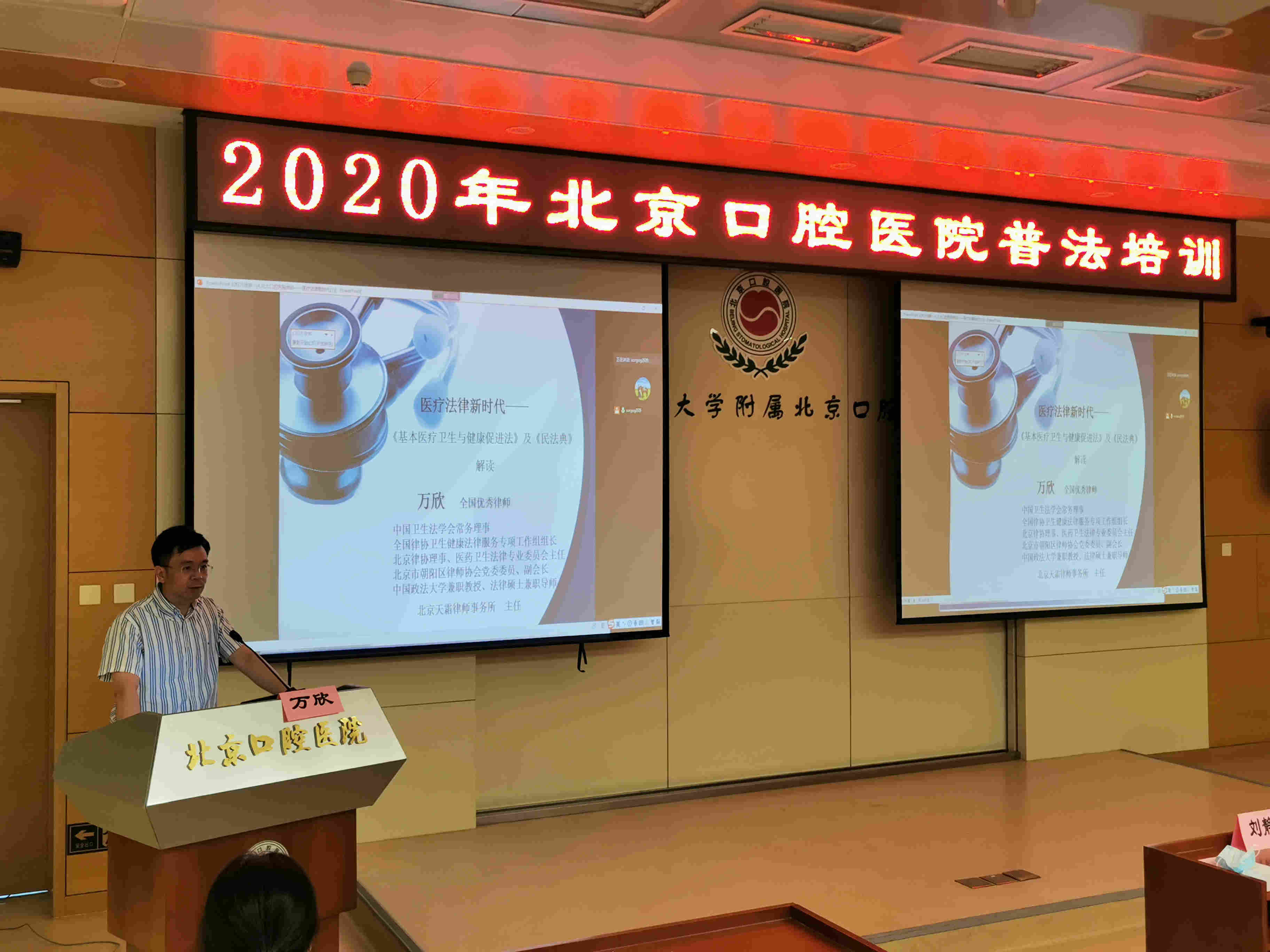 本次培训特邀中共北京市委法律专家库成员、朝阳区律师协会副会长万欣律师进行专题授课。副院长刘静明现场致辞,医务处副处长李国赓主持会议,各临床医技科室主任、护士长及行政部门人员近40人现场参加培训,其他医务人员通过“腾讯会议”App线上参会。