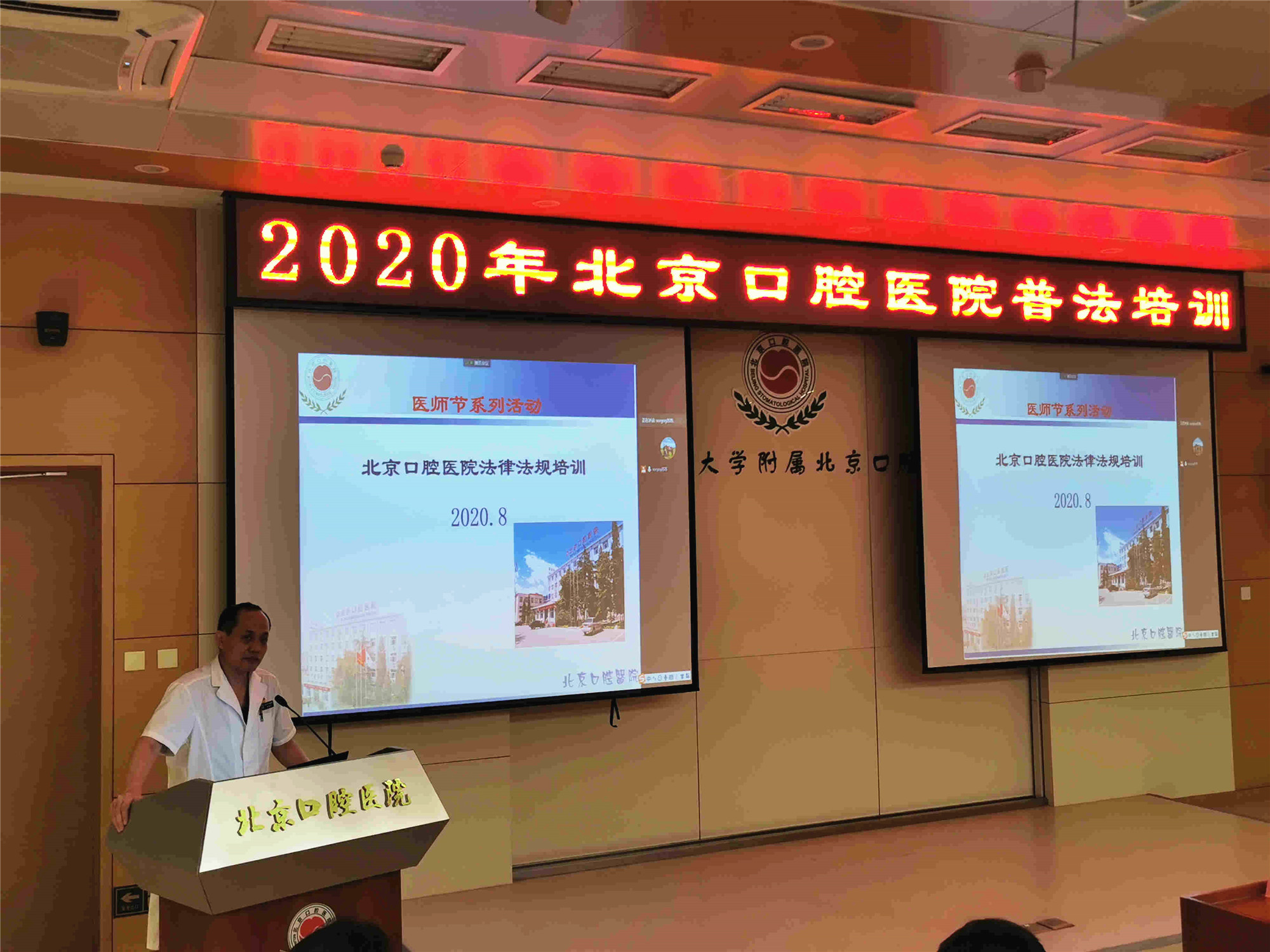 为扎实推进院内普法宣传教育工作,学习宣传《中华人民共和国民法典》和《中华人民共和国基本医疗卫生和健康促进法》,共同营造“遵纪守法、廉洁行医”的工作氛围,医务处于8月11日在阶梯教室举办了专项普法培训。考虑到疫情防控期间避免人员聚集,培训采用线上和线下相结合的方式进行。