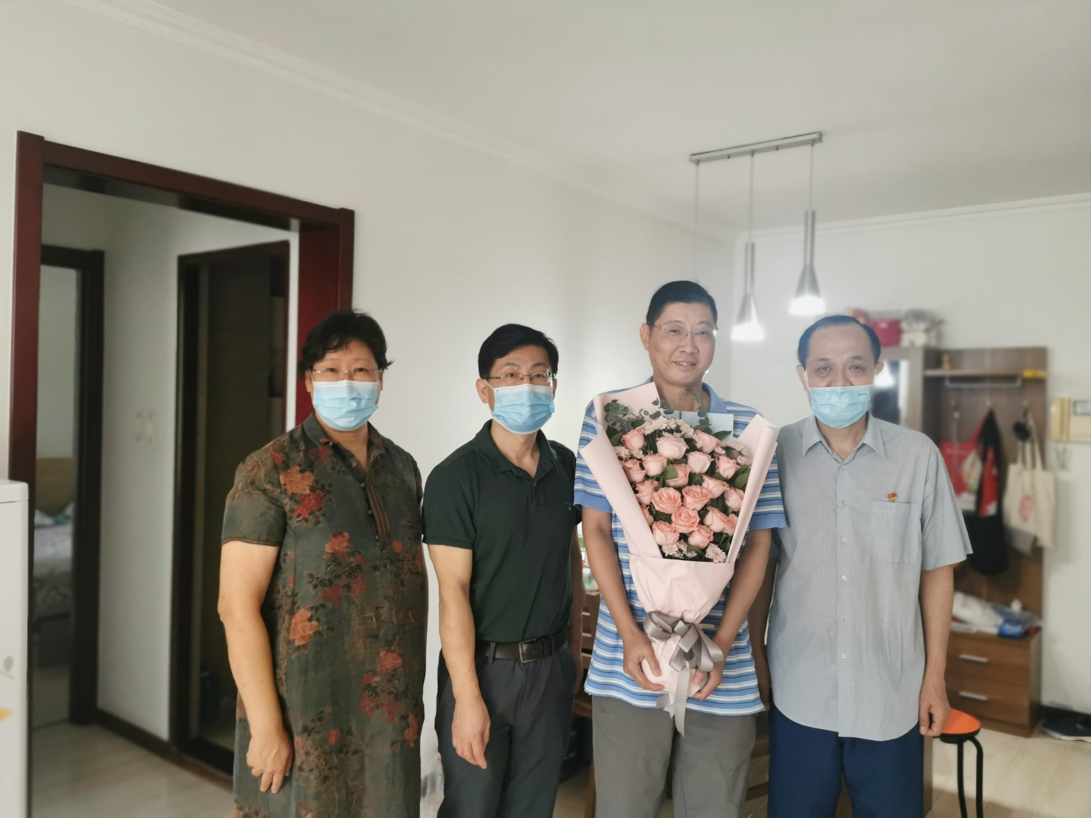 8月18日上午,在第三个中国医师节即将到来之际,我院院长白玉兴、副院长刘淑敏、刘静明带领相关工作人员来到急诊综合诊疗中心庞渤医师家中慰问,致以节日问候,表达美好祝福。