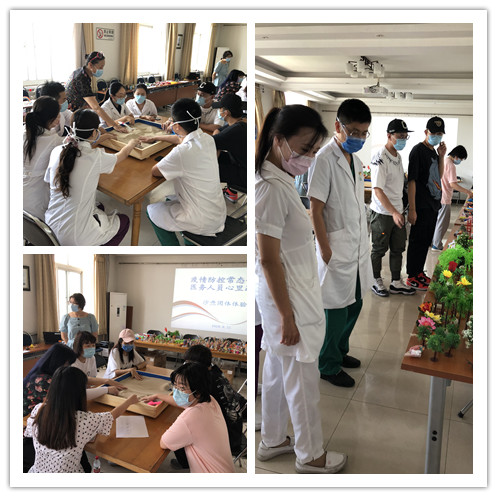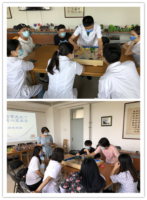 为贯彻落实关心关爱应对新冠肺炎疫情医务人员的指示精神,进一步做好疫情防控常态化下医务人员的心理疏导工作,2020年8月21日下午,院工会特聘请北京大学回龙观临床医学院心理健康干预中心的老师为我院曾赴小汤山及地坛定点医院支援抗击疫情的医疗队队员、咽拭子采集队队员及部分疫情防控期间担任重点工作的科室人员在行政楼503会议室开展了主题为“沙盘团体减压体验”的心理健康辅导。